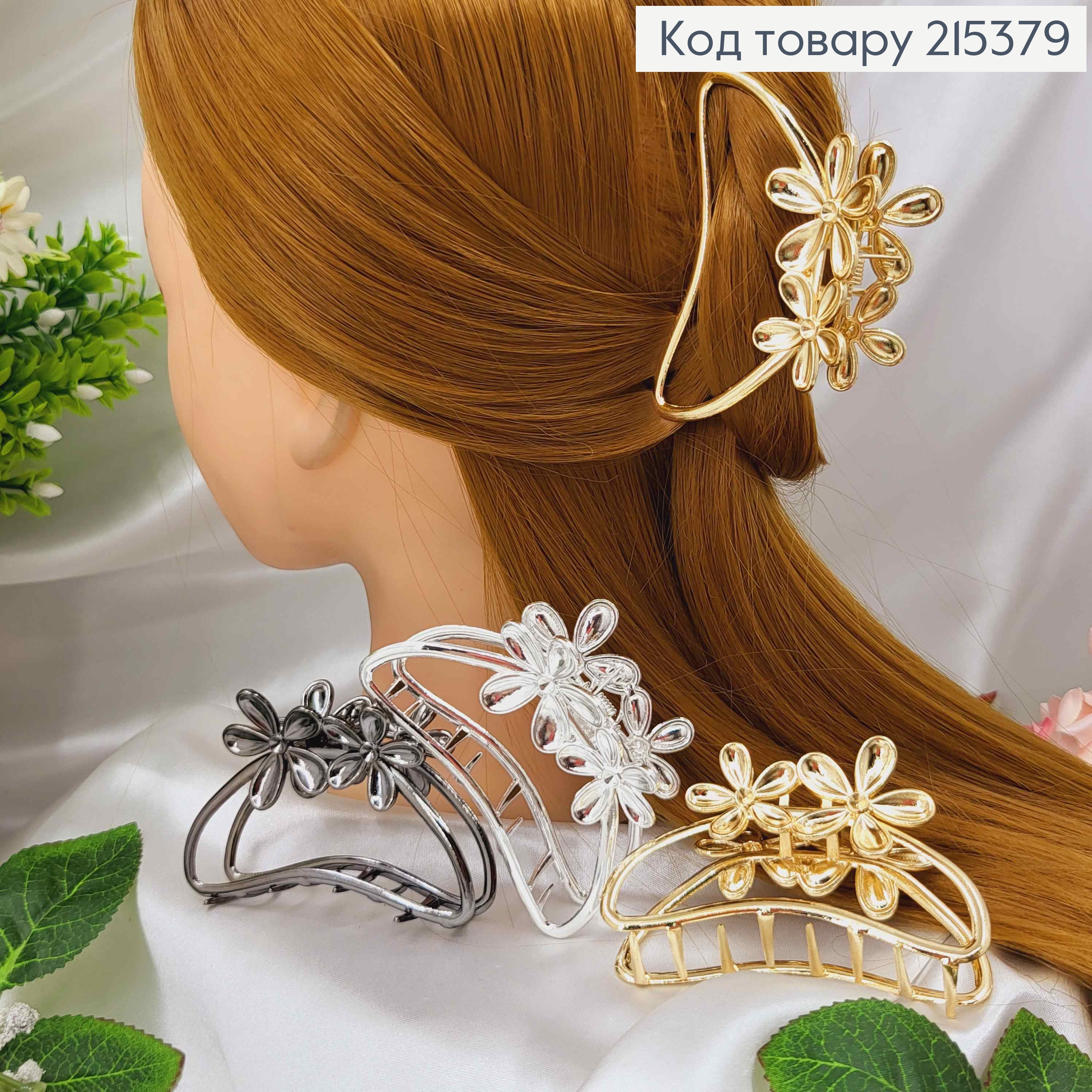 Краб металл, "Три сплетенных кольца", 5см, Золото/Серебро/Металик цвета в ассорт. 215777 фото