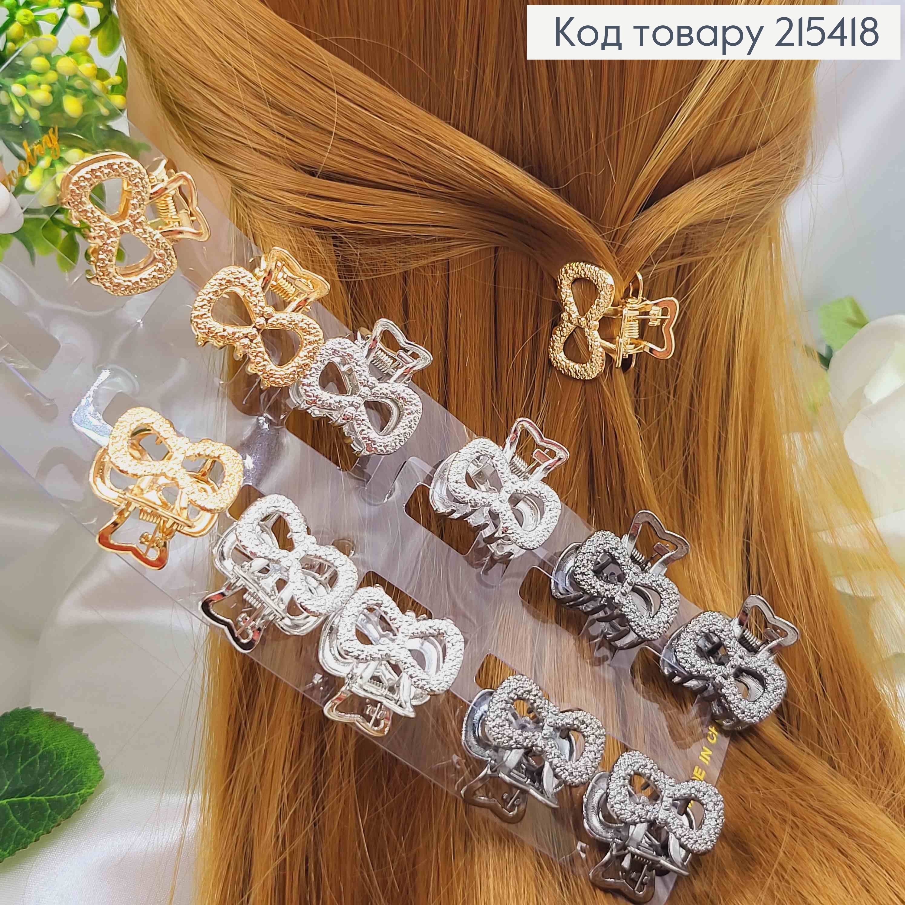 Краб металл, Фактурный, Бантик, 2,5см, цвета в ассорт.