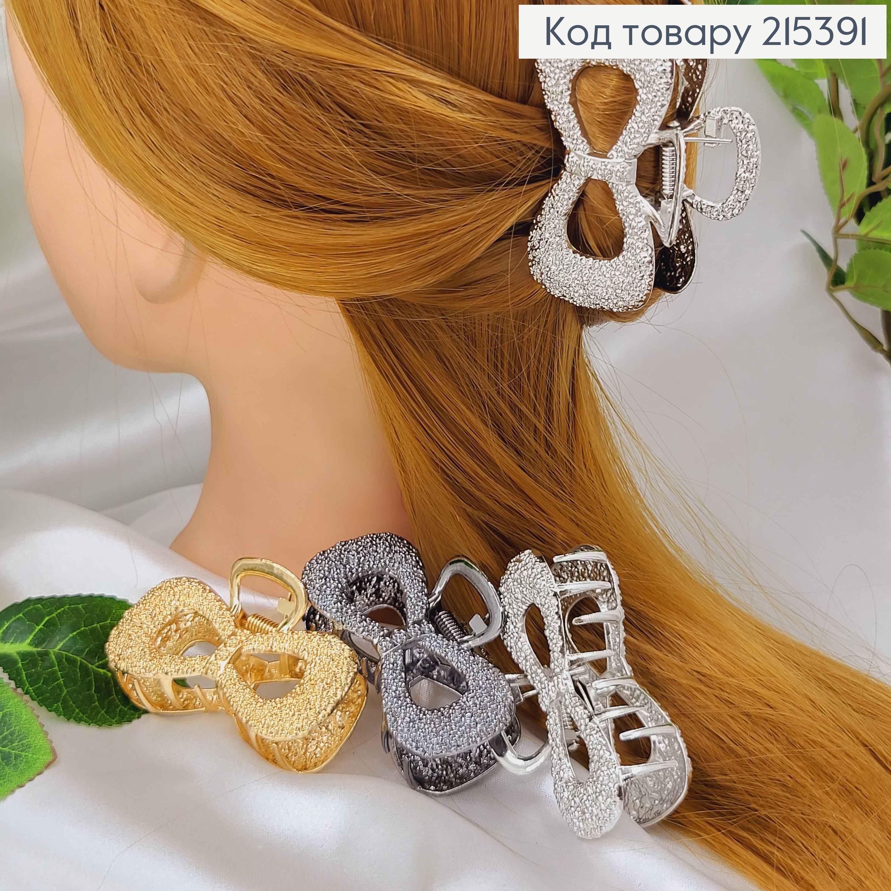 Краб металл "Ажурный Бант" украшен блестящими камешками, 6см, цвета Металик 215775 фото