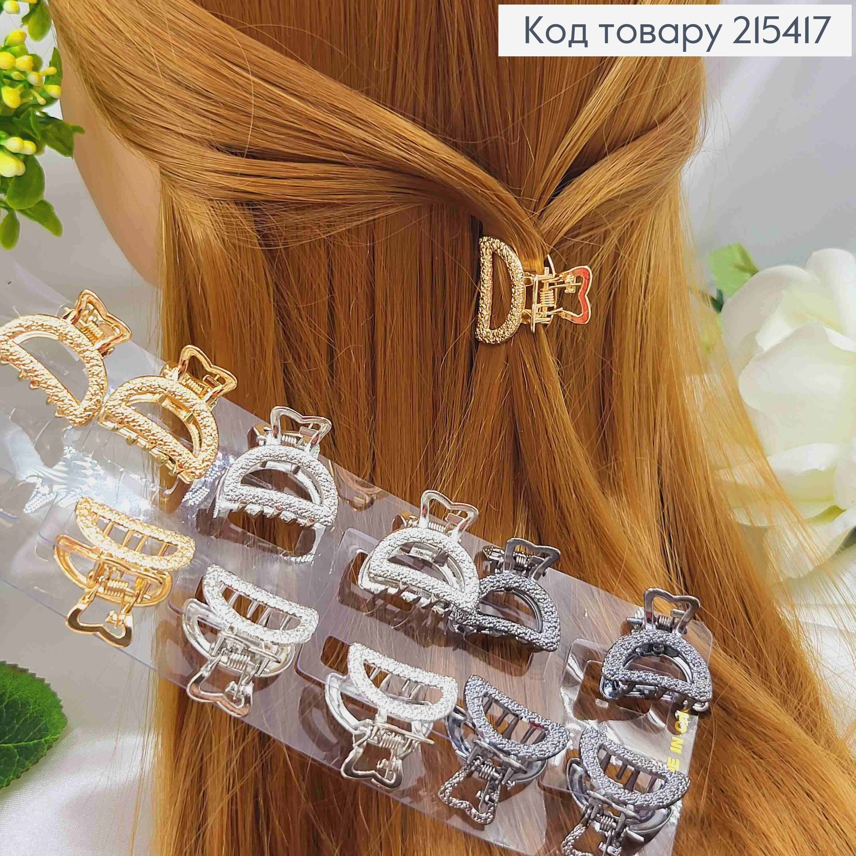 Краб металл "Ажурный Бант" украшен блестящими камешками, 6см, цвета Металик 215775 фото