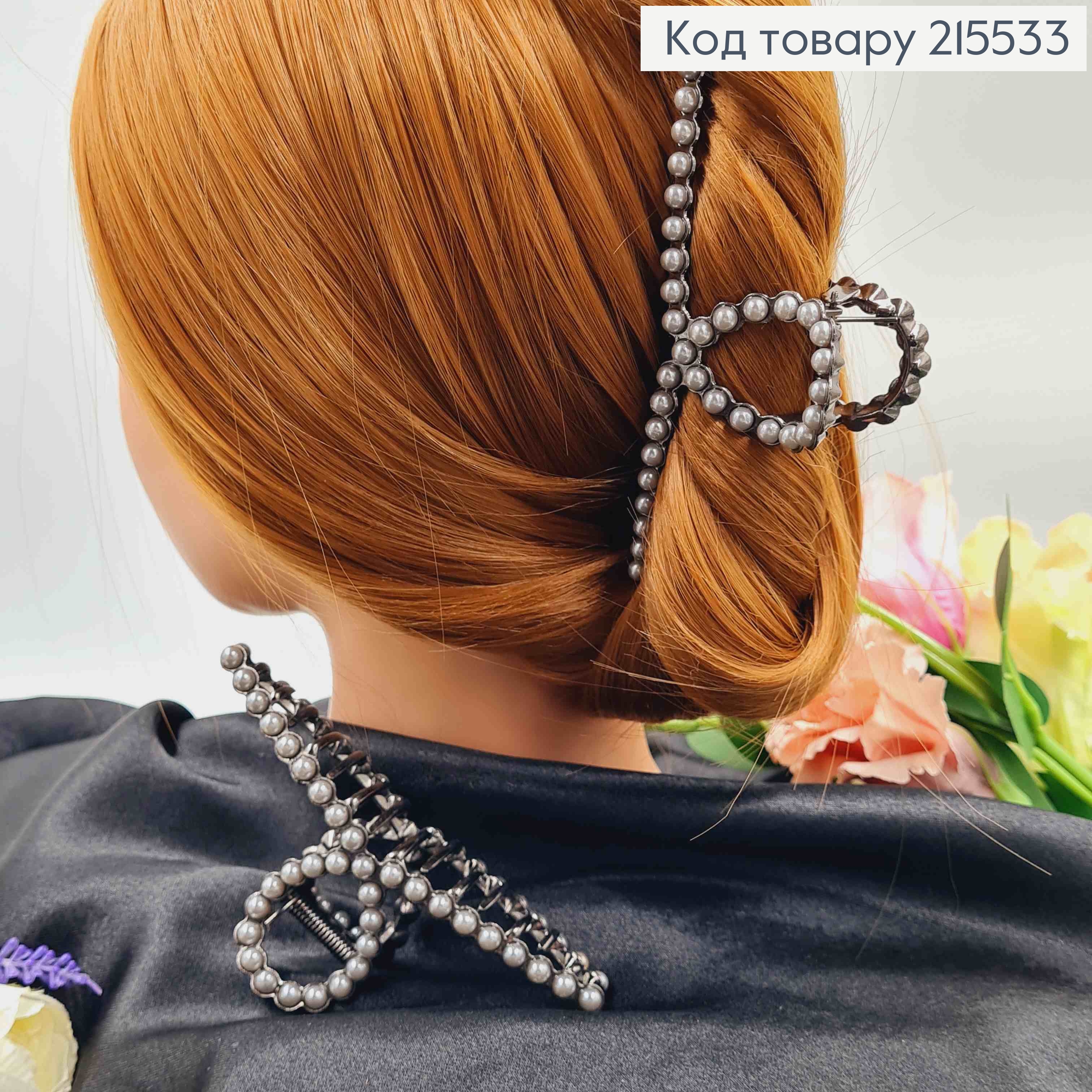 Краб металл "Ажурный Бант" украшен блестящими камешками, 6см, цвета Металик 215775 фото