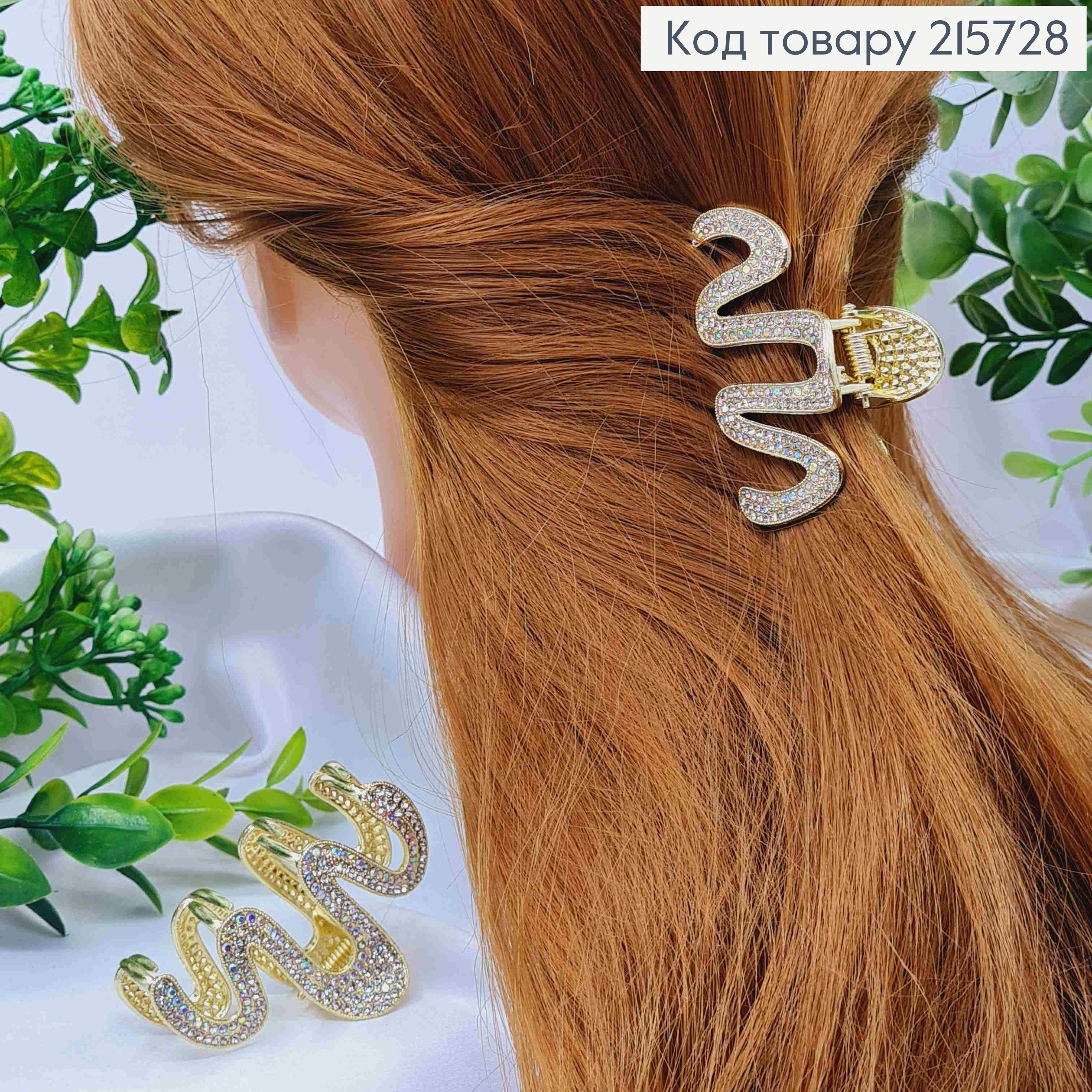 Краб металл "Петелька" украшен Блестящими камешками, 6см, Золотого цвета 215774 фото