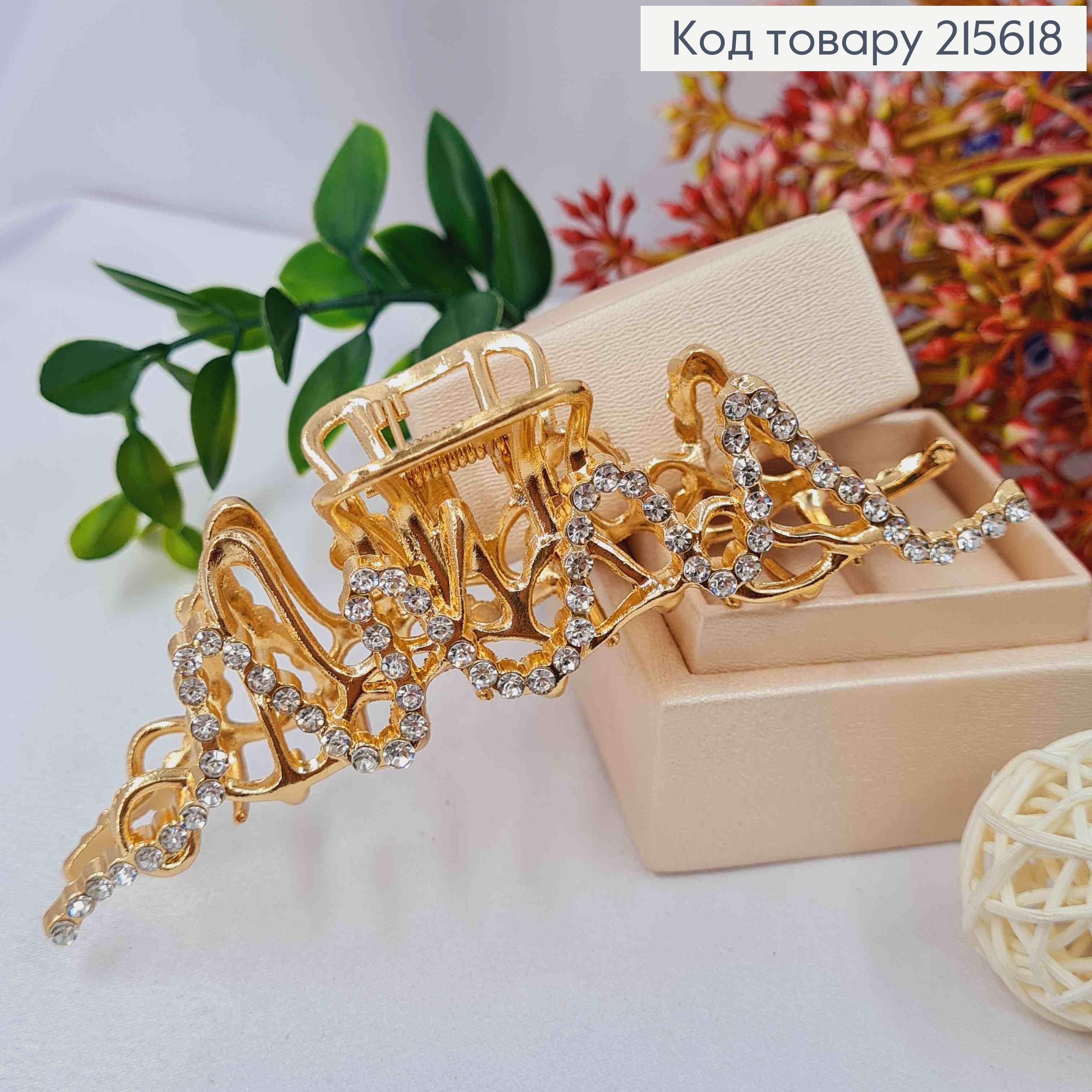 Краб металл "Бабочка" из Блестящих камней и с вензелями, 11см, Золотого цвета 215760 фото