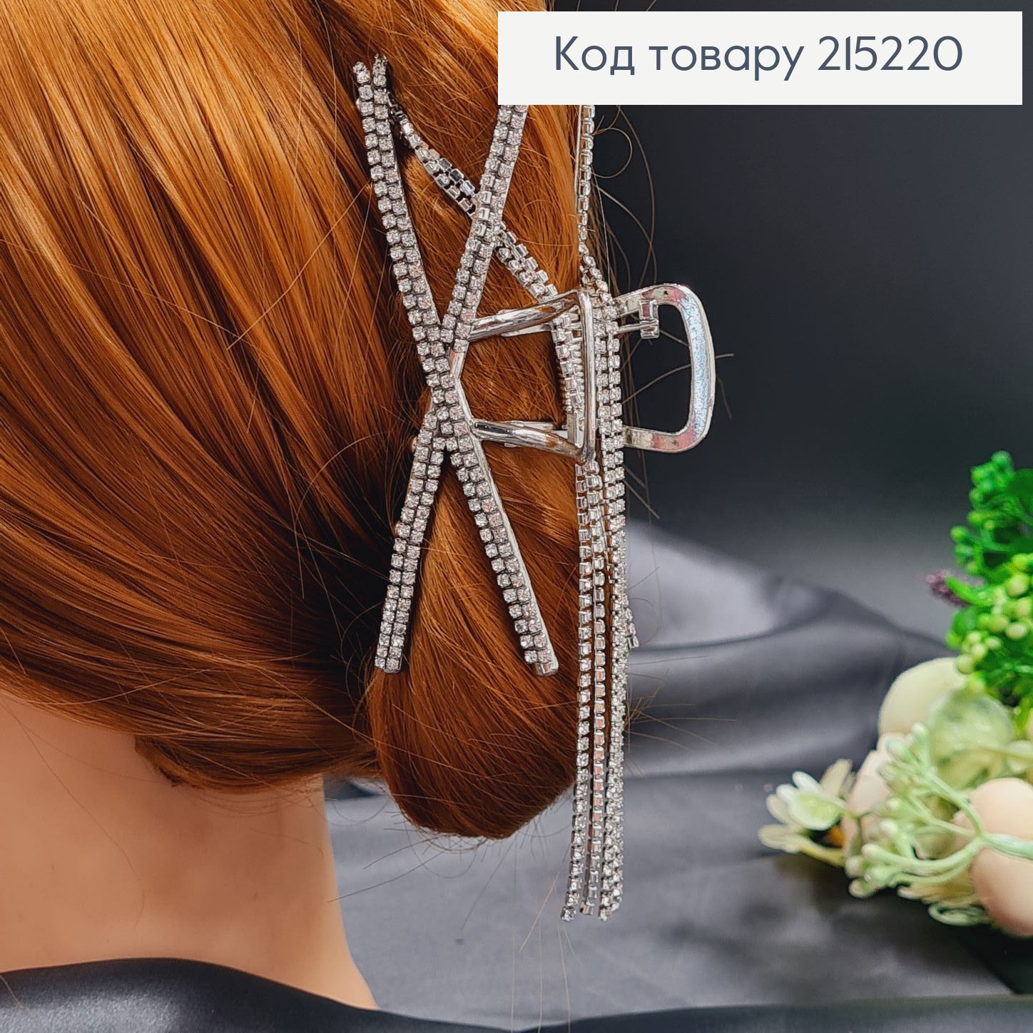 Краб металл "Петелька" украшен Блестящими камешками, 6см, Серебряного цвета 215776 фото