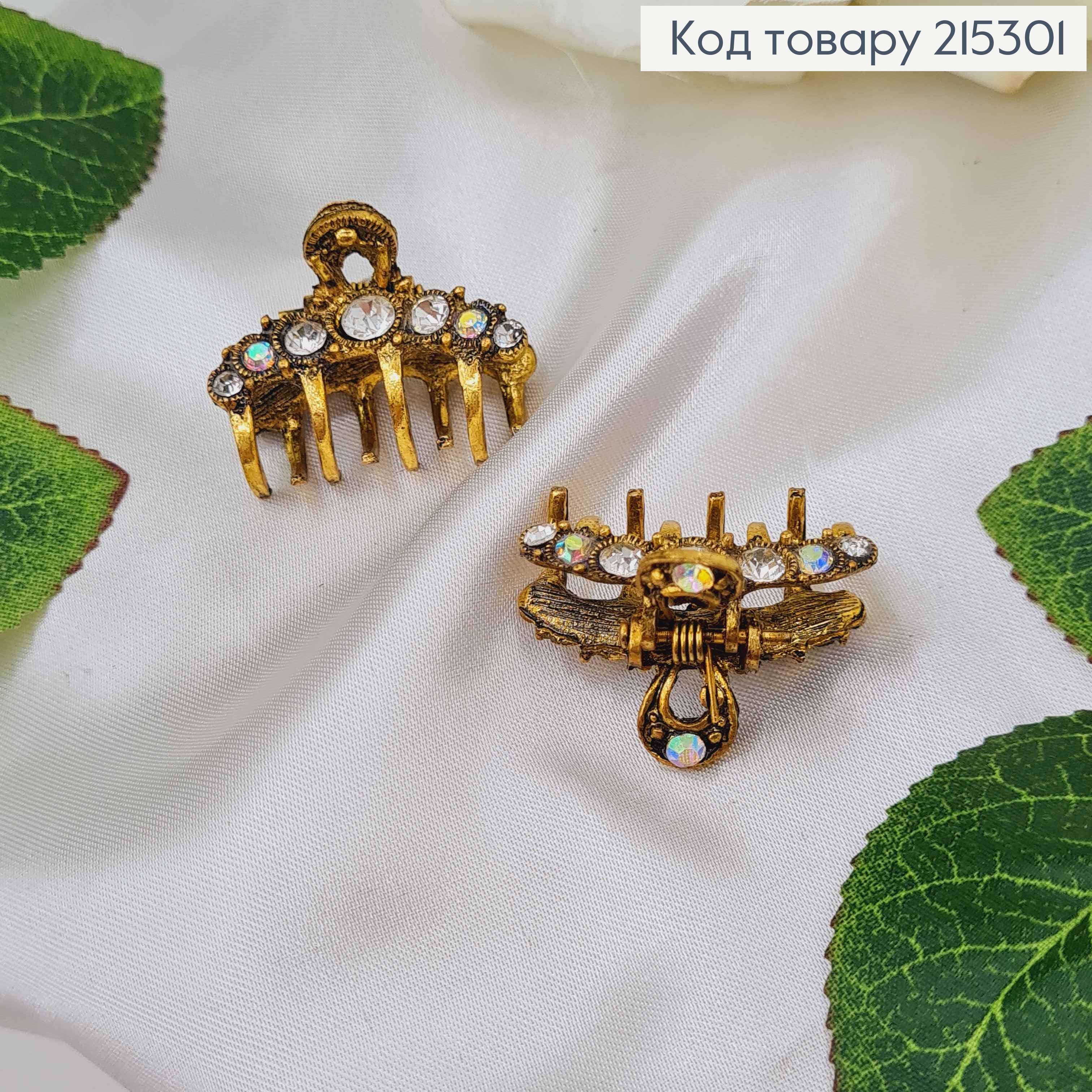 Краб металл "Бабочка" из Блестящих камней и с вензелями, 11см, Золотого цвета 215760 фото