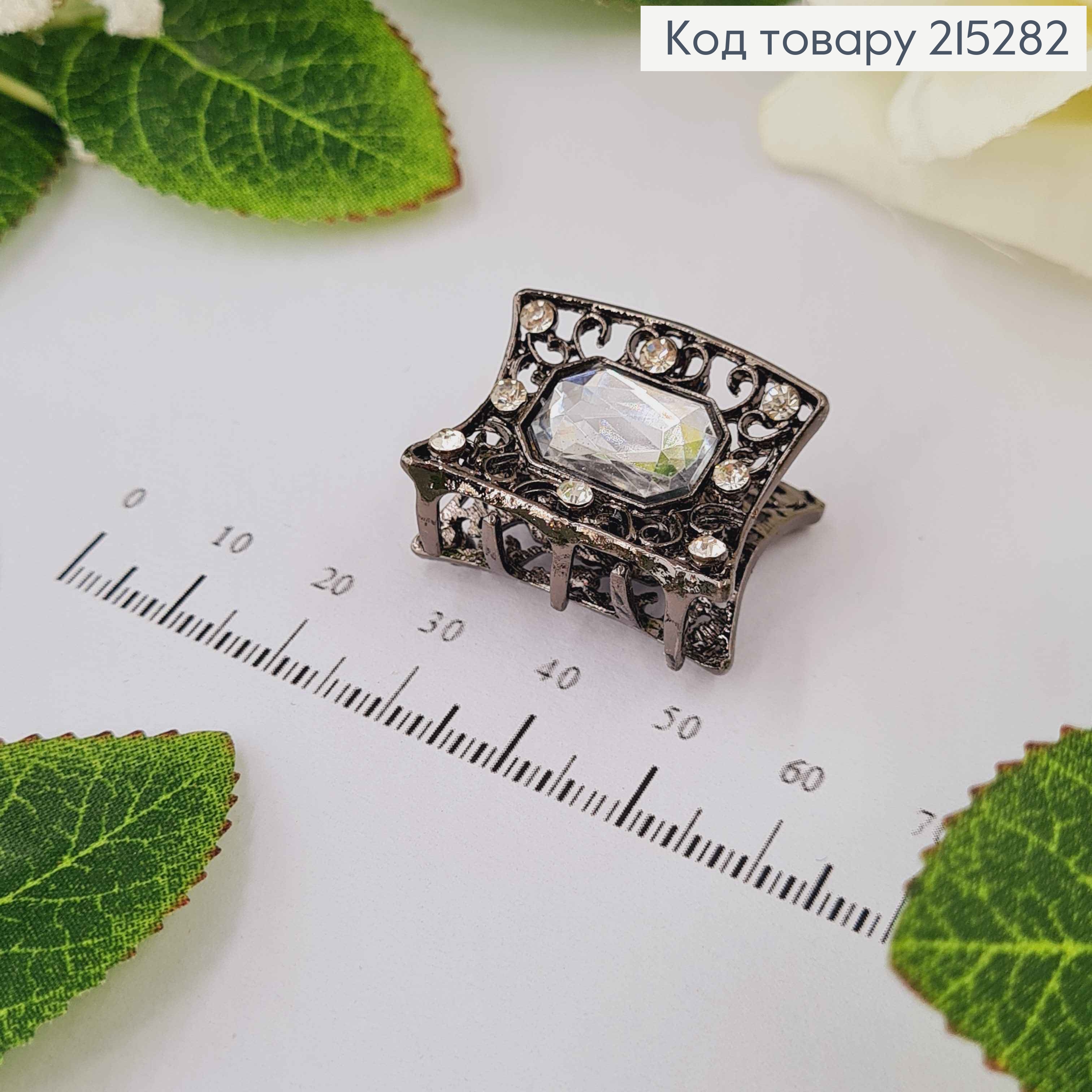 Краб металл "Петелька" украшен Блестящими камешками, 6см, Серебряного цвета 215776 фото