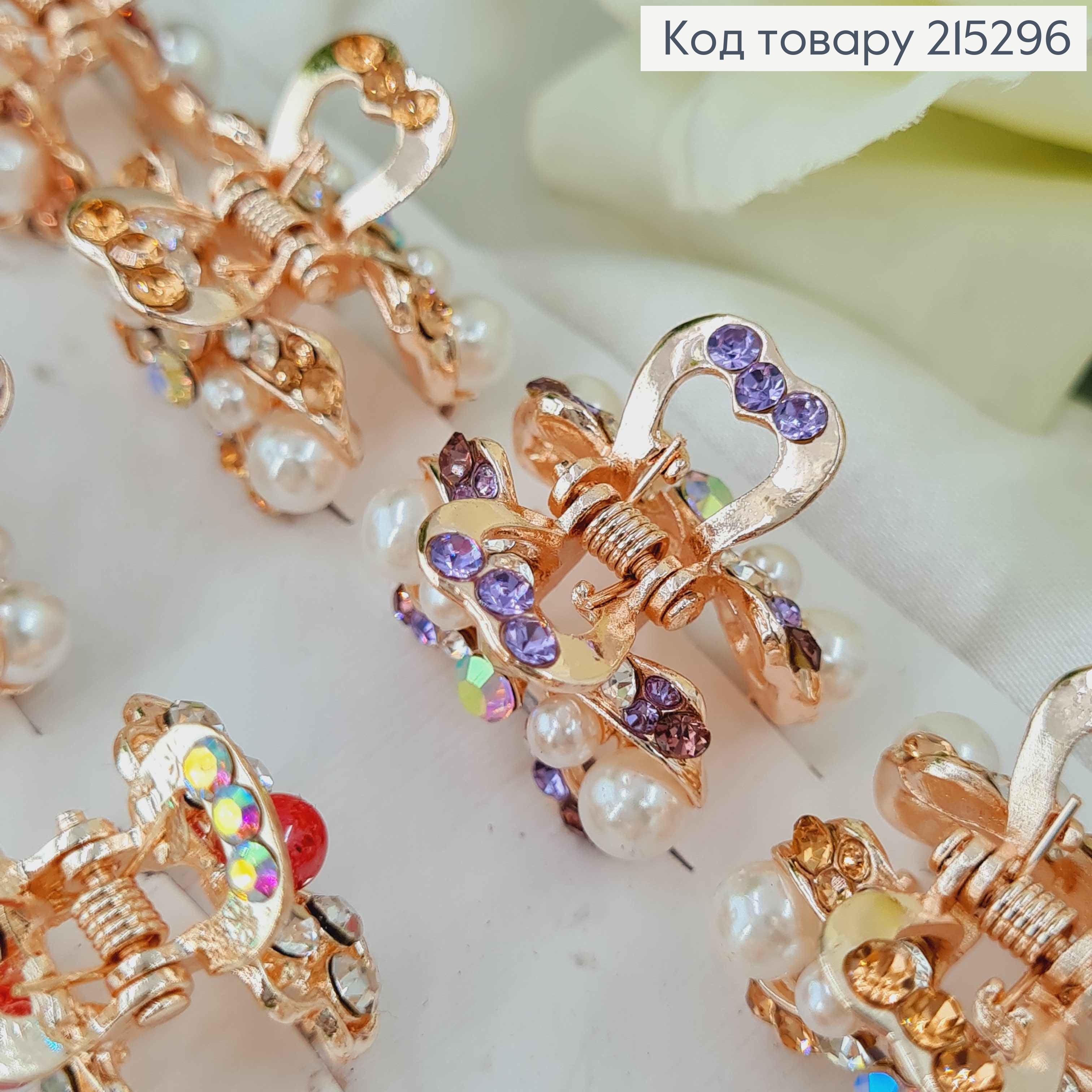 Краб металл "Бабочка" из Блестящих камней и с вензелями, 11см, Золотого цвета 215760 фото