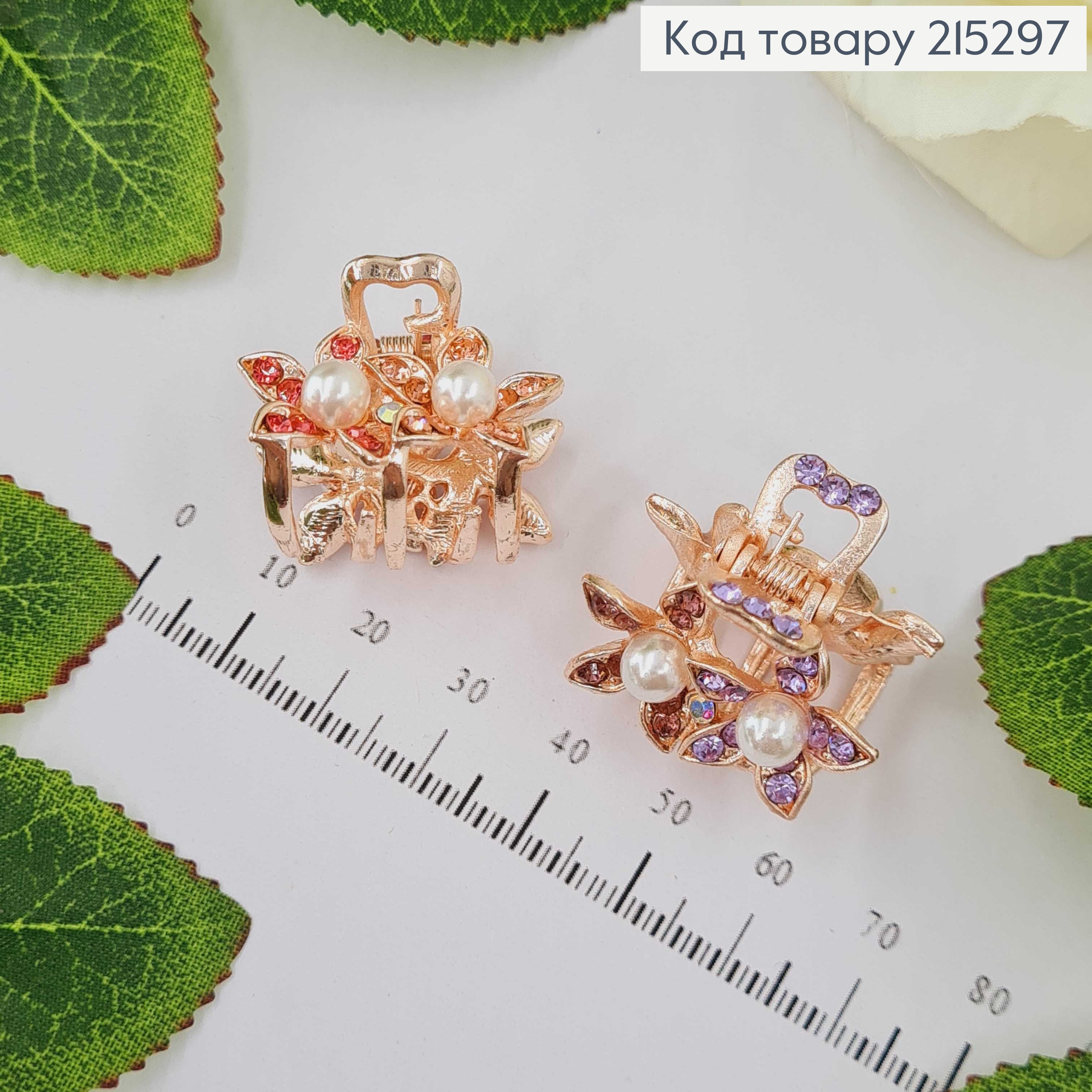 Краб металл цвета розового золота, 2,5см, цветочки с камешками и жемчужинами в ассорт.