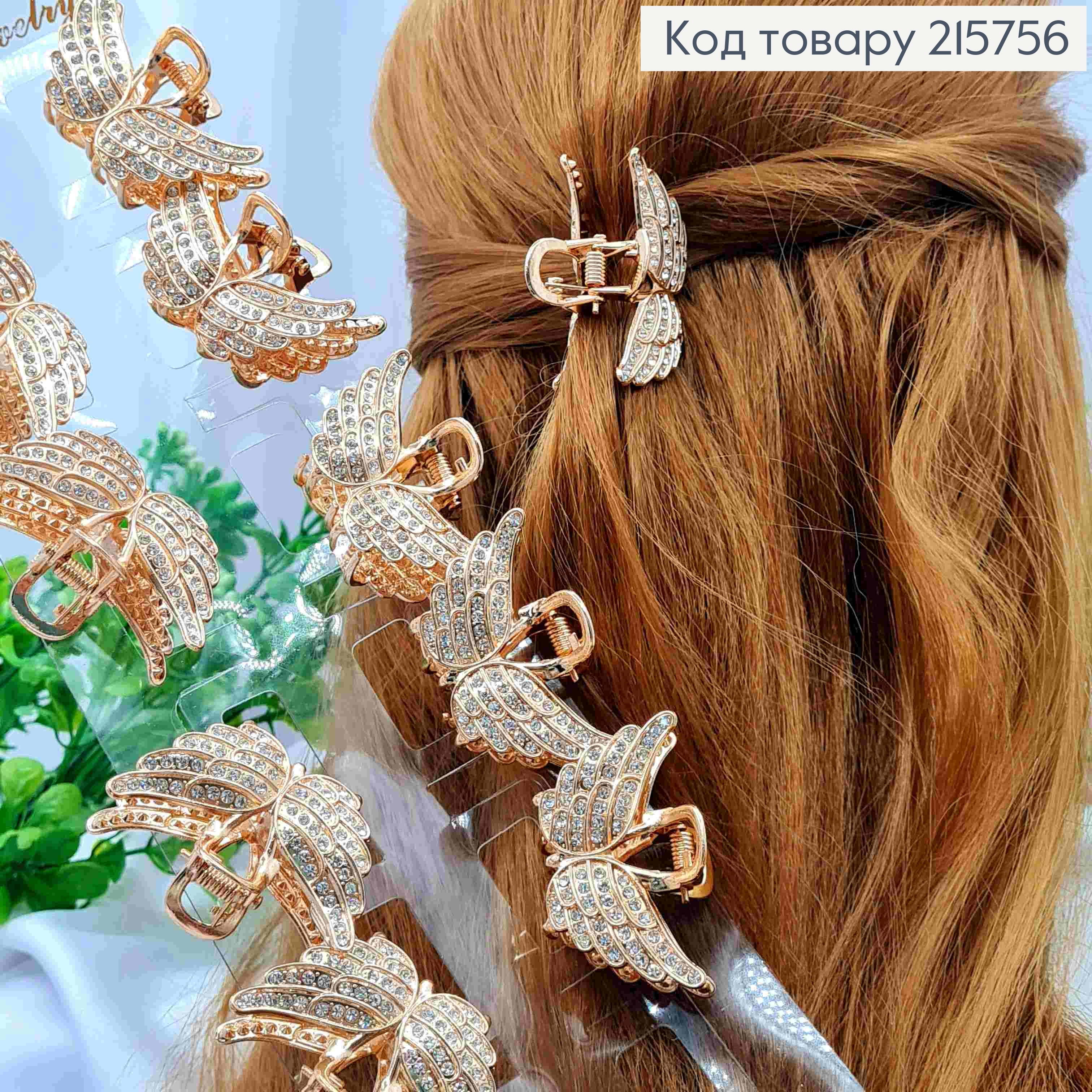 Краб металл "КРЫЛЬЯ" с Блестящими камешками, 4,8см, Золотого цвета