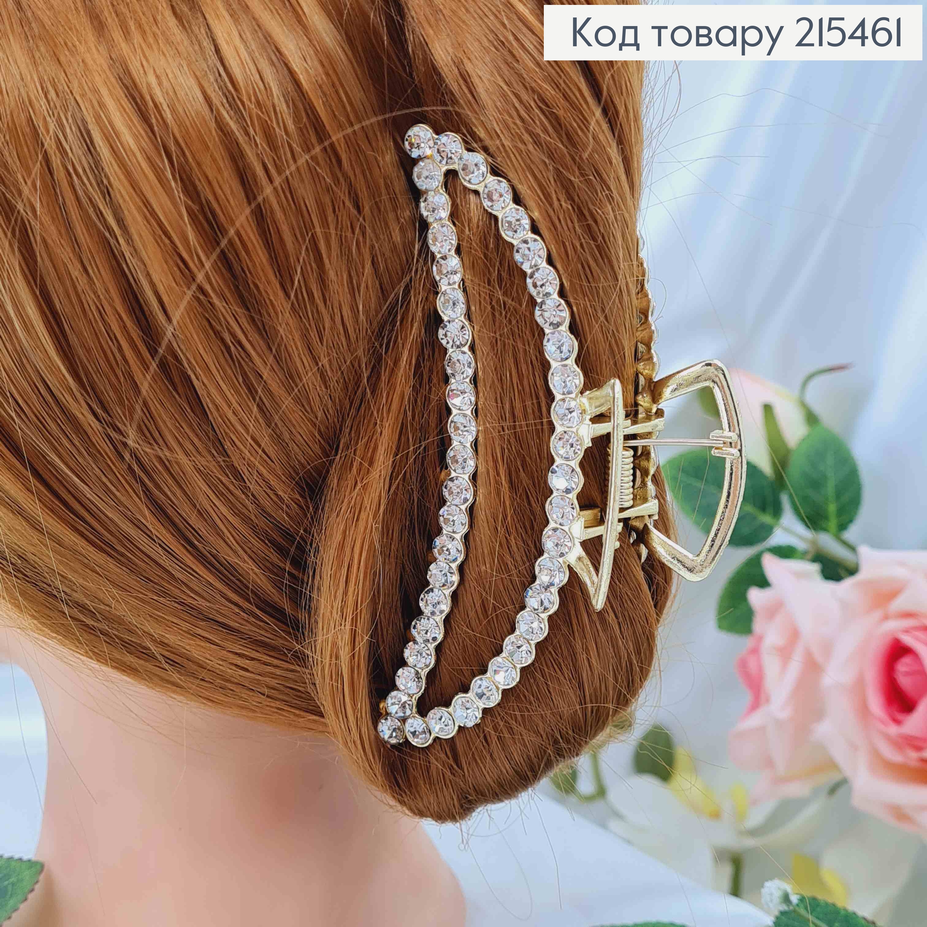 Краб металл "Петелька" украшен Блестящими камешками, 6см, Золотого цвета 215774 фото