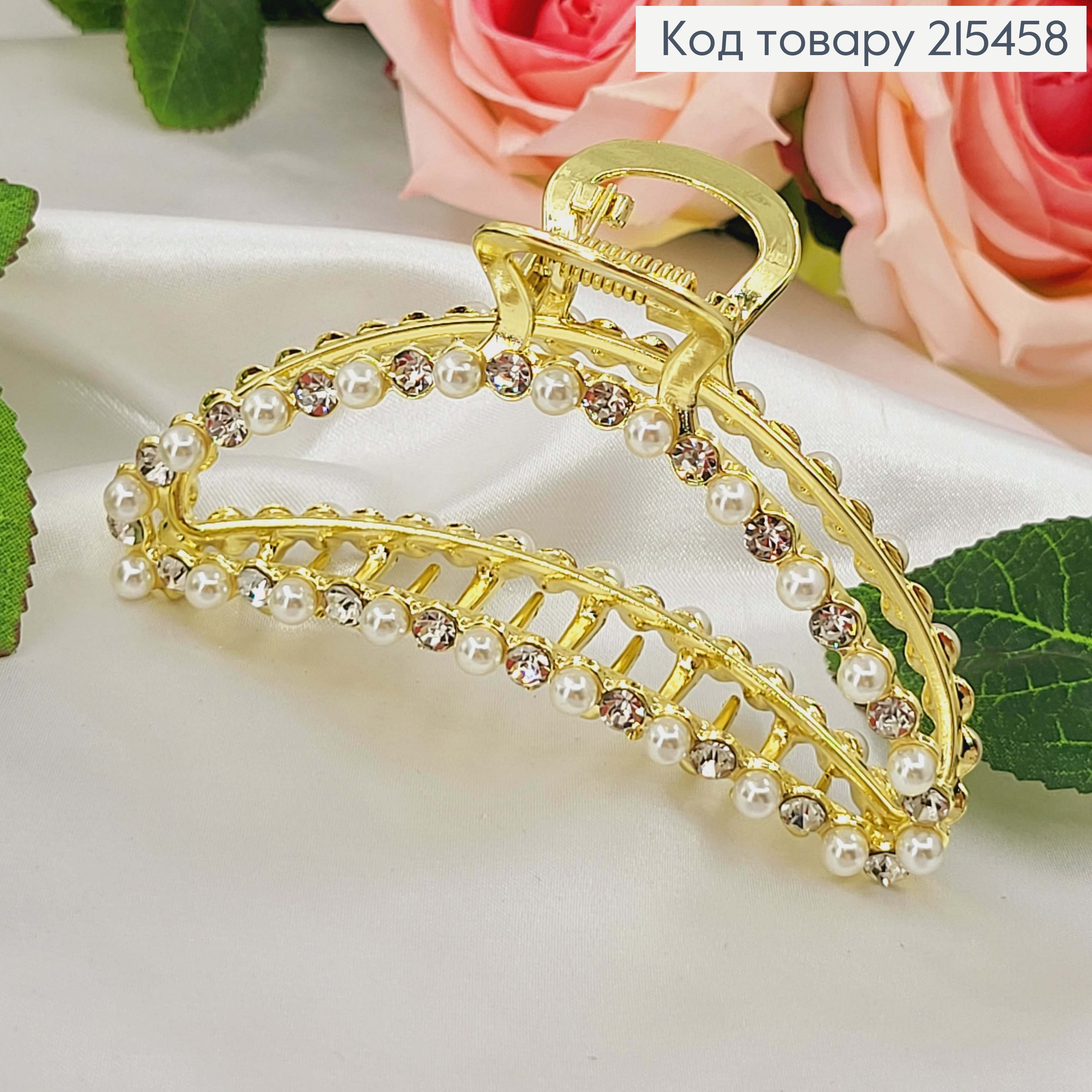 Краб металл "КОЛОСОК" с Блестящими камешками и Жемчужками, 11см, Золотого цвета 215761 фото
