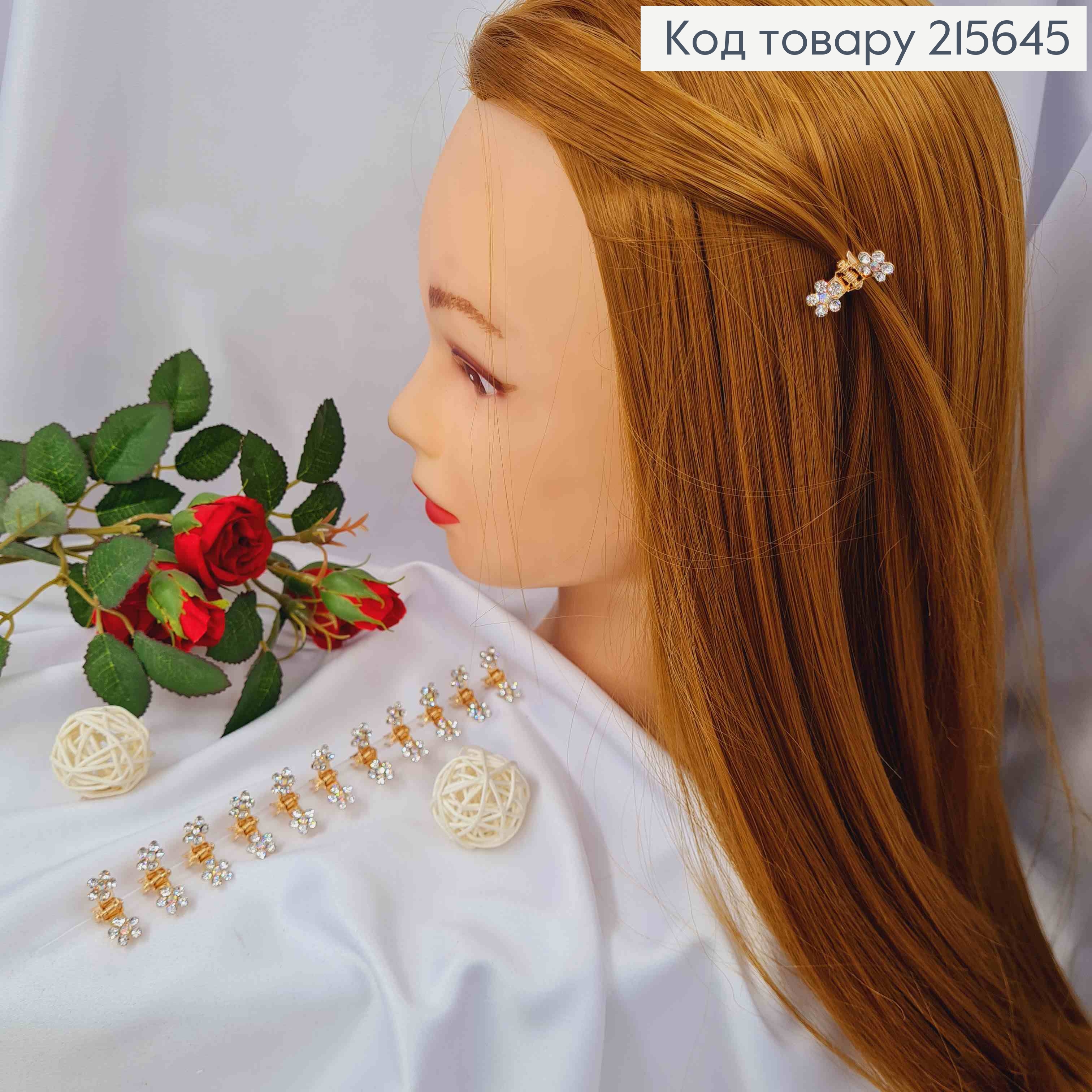 Краб металл, маленький, с двумя Цветочками в Блестящих камнях, золотог цвета 1см, 12шт/уп