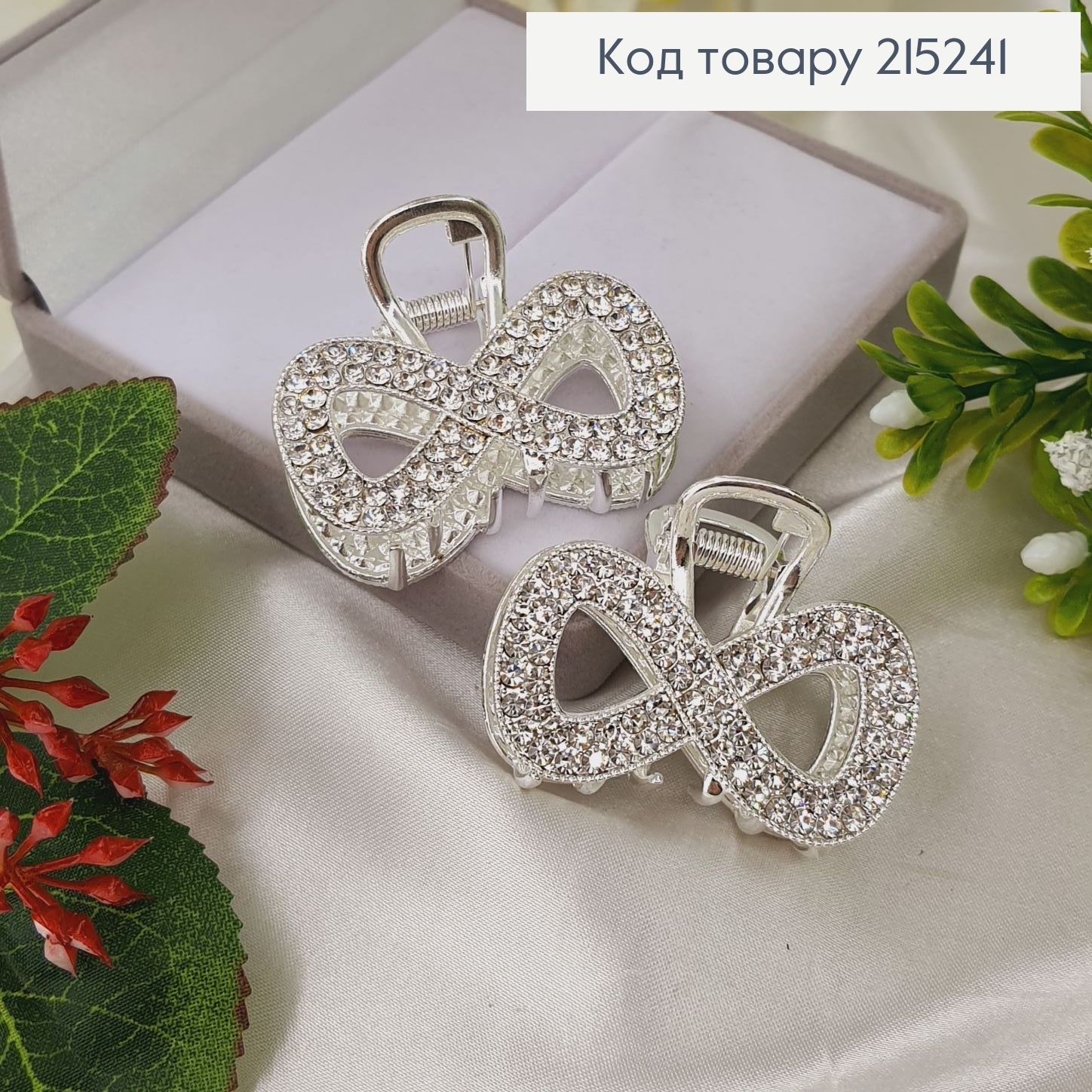Краб металл "Петелька" украшен Блестящими камешками, 6см, Серебряного цвета 215776 фото