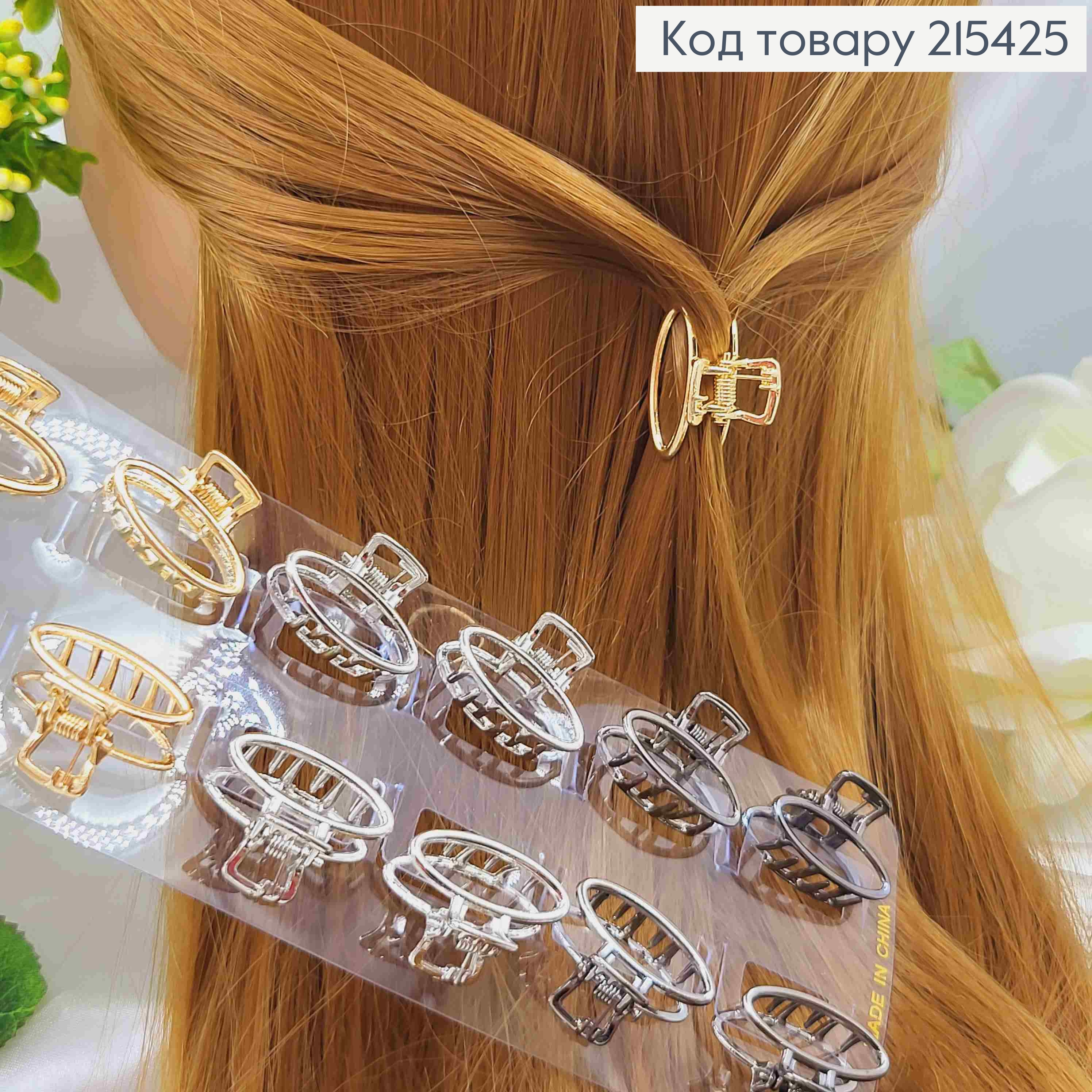 Краб металл, "Три сплетенных кольца", 5см, Золото/Серебро/Металик цвета в ассорт. 215777 фото