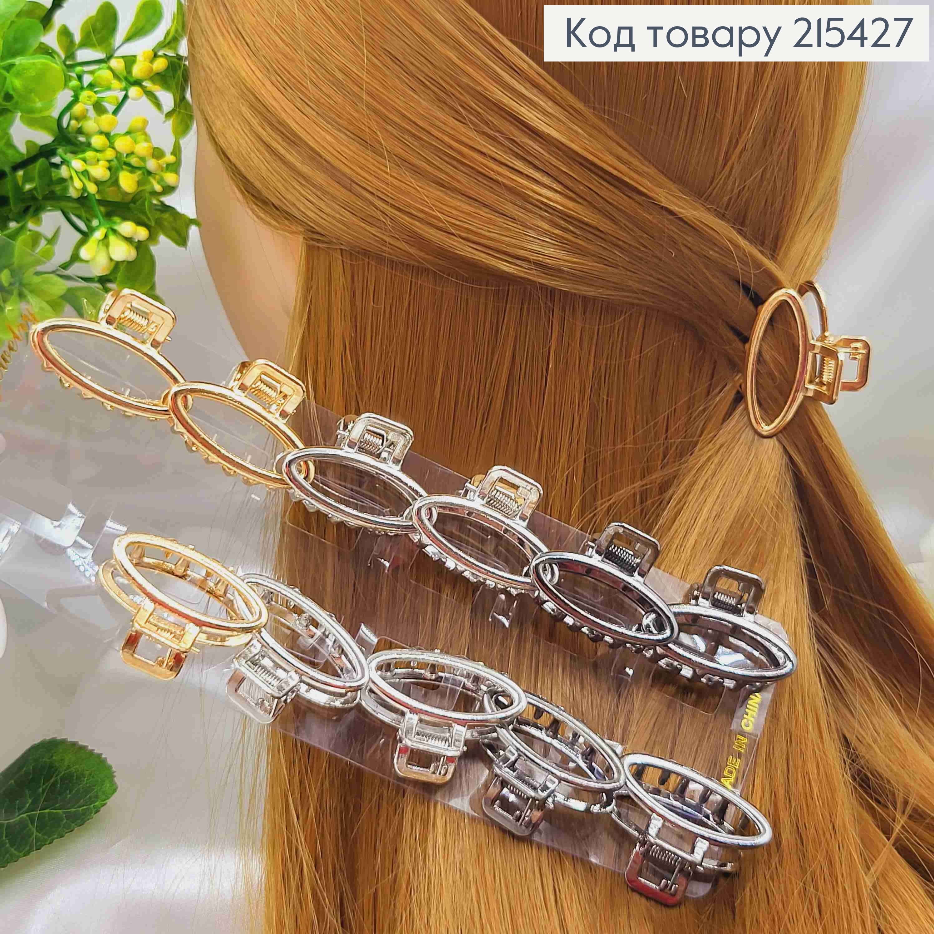 Краб металл, "Три сплетенных кольца", 5см, Золото/Серебро/Металик цвета в ассорт. 215777 фото