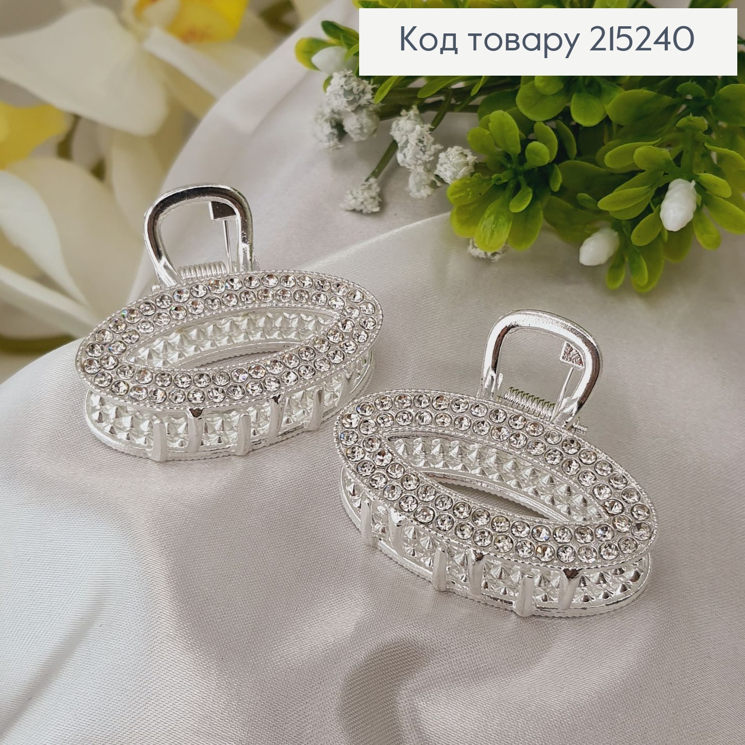 Краб металл "Петелька" украшен Блестящими камешками, 6см, Серебряного цвета 215776 фото