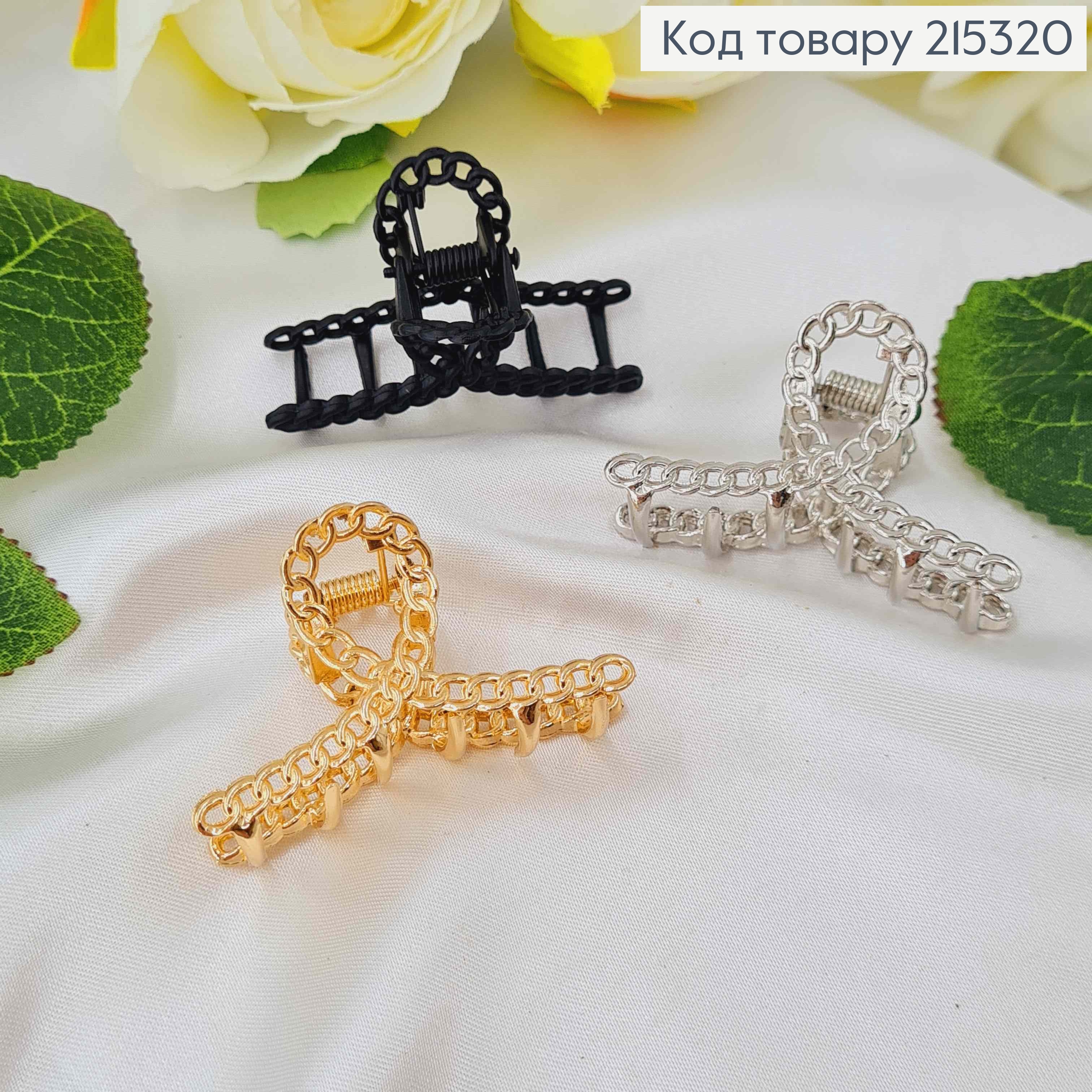 Краб металл, "Три сплетенных кольца", 5см, Золото/Серебро/Металик цвета в ассорт. 215777 фото