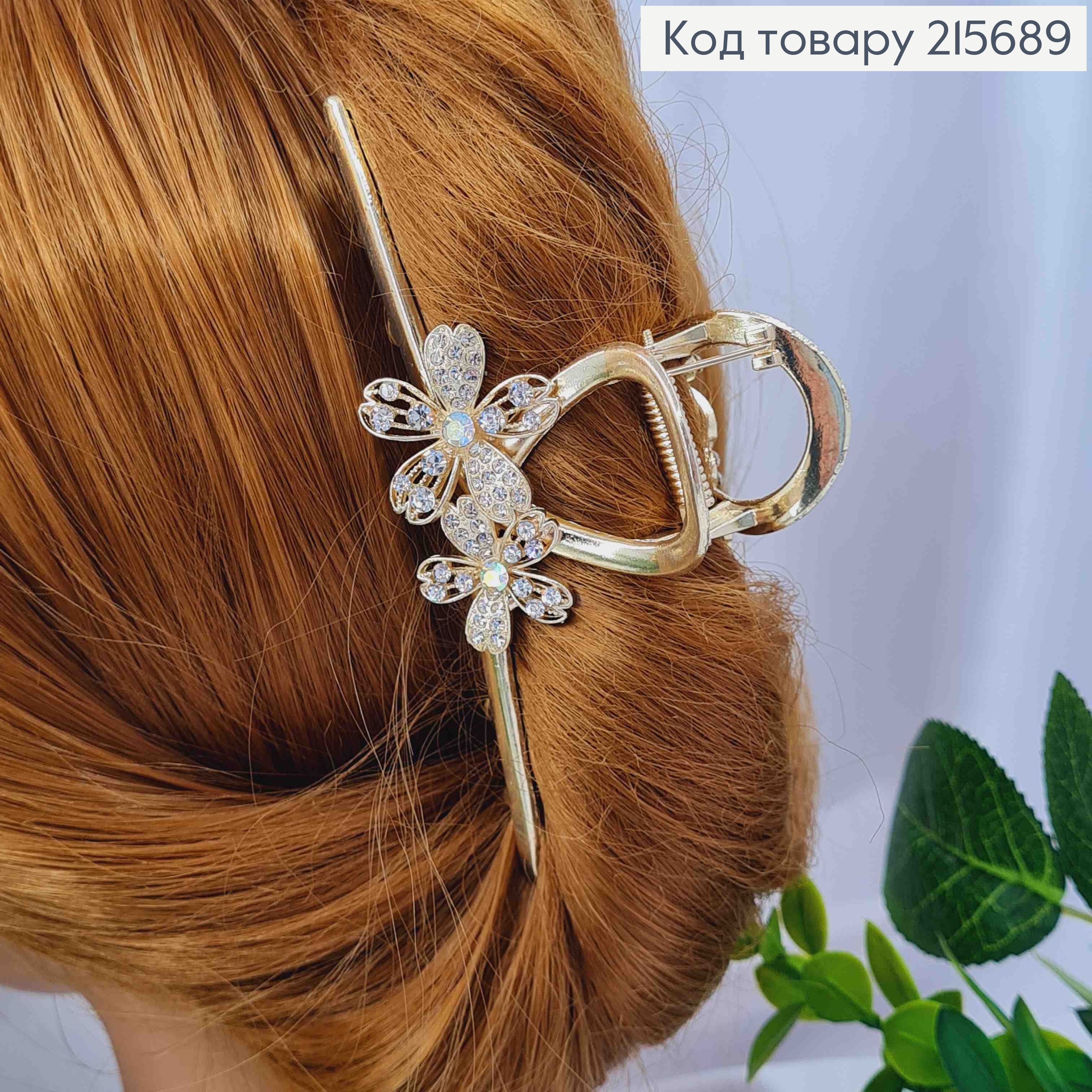 Краб металл "Бабочка с Цветами" с Блестящими камешками, 10см, Золотого цвета 215763 фото