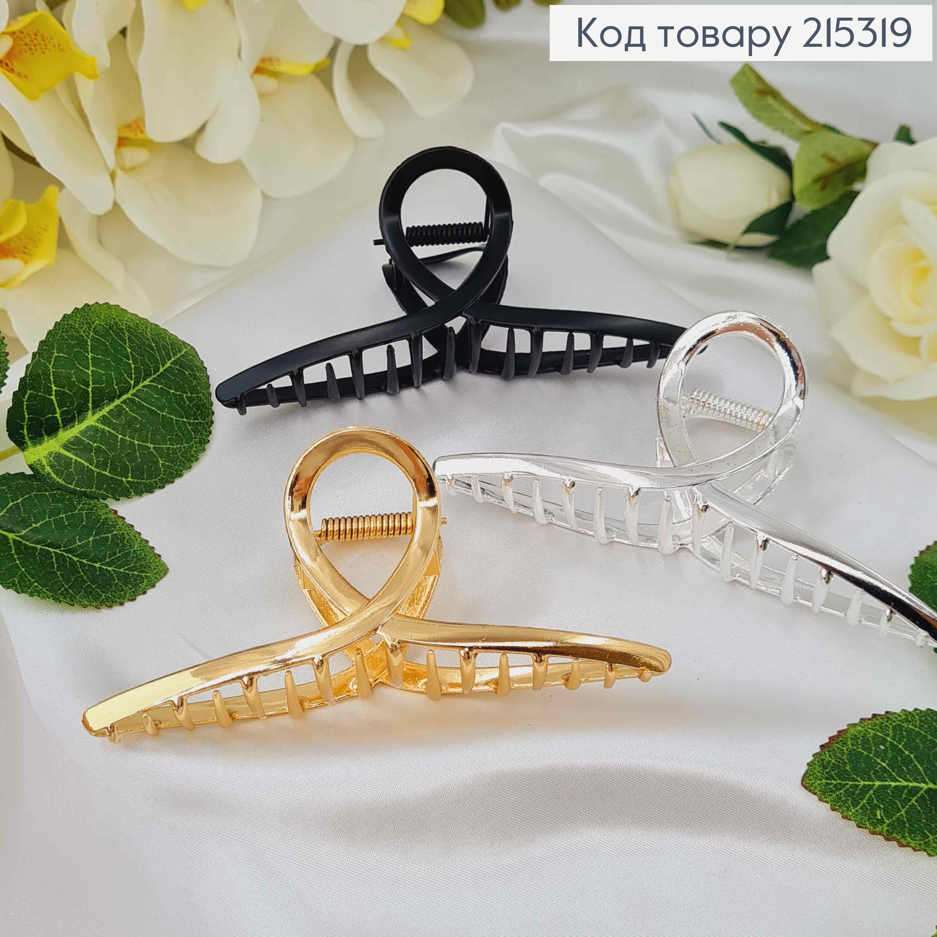 Краб металл, "Три сплетенных кольца", 5см, Золото/Серебро/Металик цвета в ассорт. 215777 фото