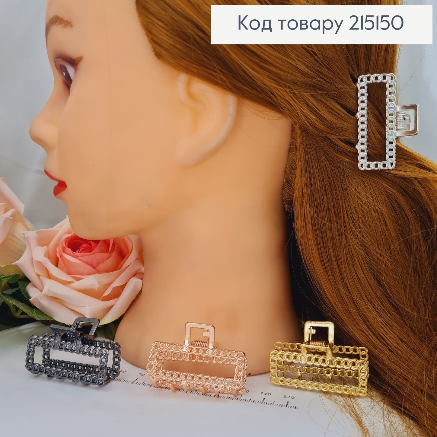 Краб металл, "Три сплетенных кольца", 5см, Золото/Серебро/Металик цвета в ассорт. 215777 фото