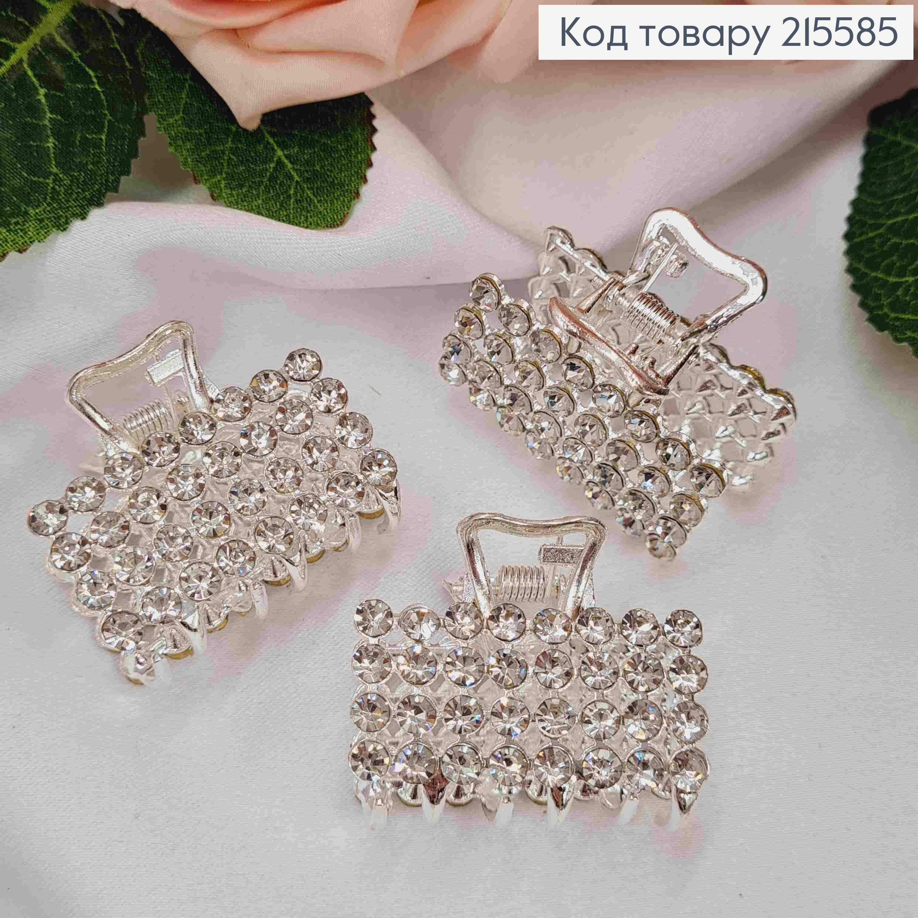 Краб металл "Петелька" украшен Блестящими камешками, 6см, Серебряного цвета 215776 фото