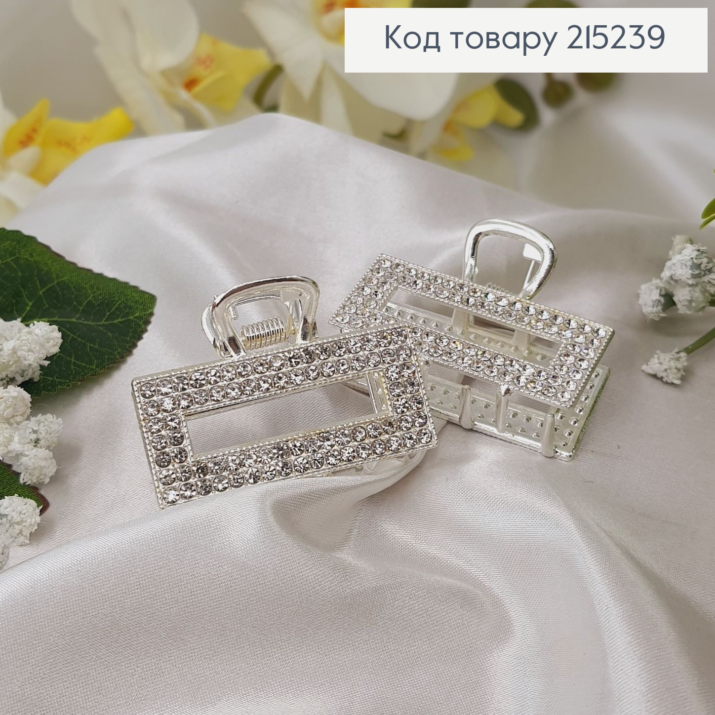 Краб металл "Петелька" украшен Блестящими камешками, 6см, Серебряного цвета 215776 фото