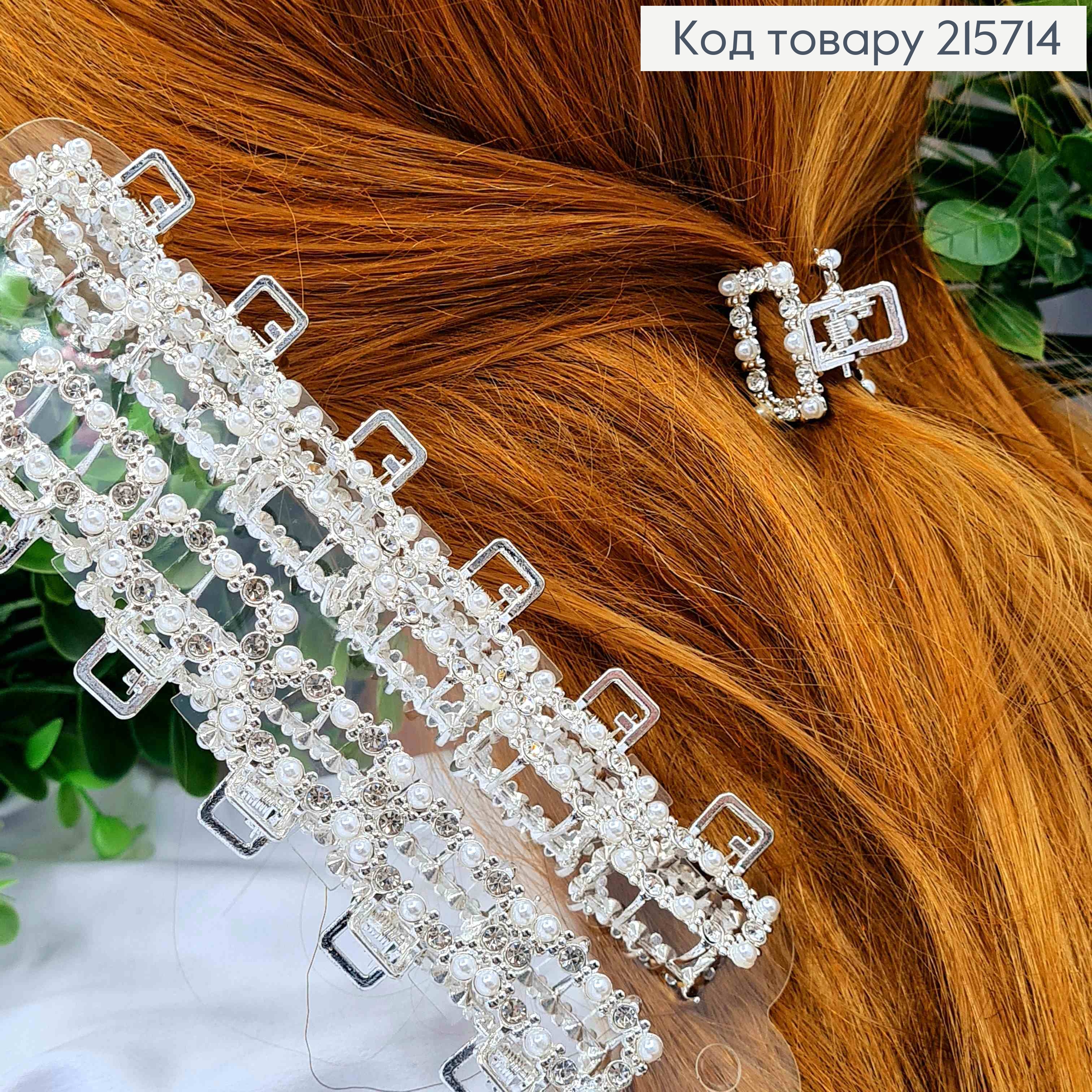 Краб металл "ПРЯМОУГОЛЬНЫЙ" с Блестящими камешками и Жемчужками, 2,5см, Серебряного цвета