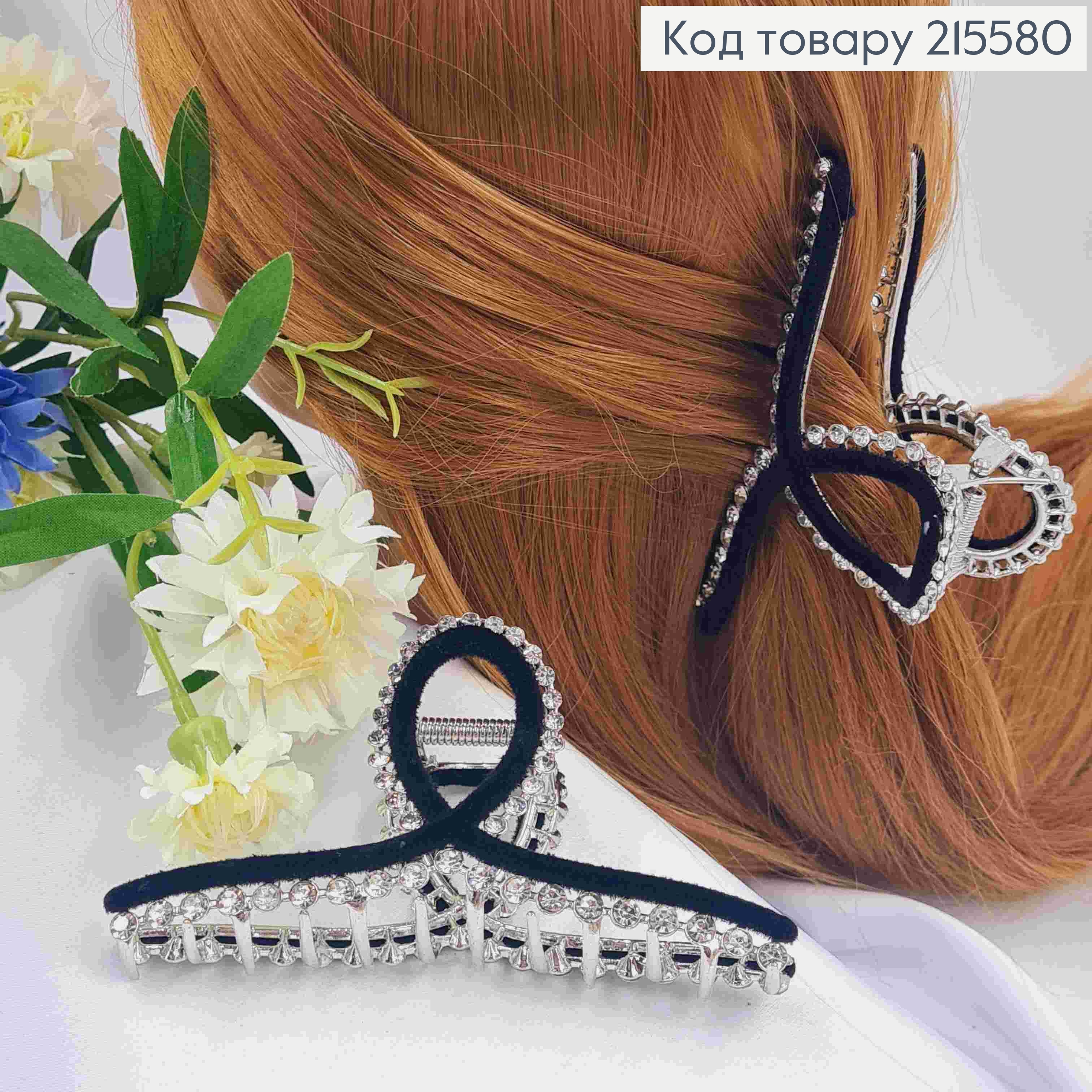 Краб металл Роскошный "Камни + черный бархат", 11,5см, серебряного цвета