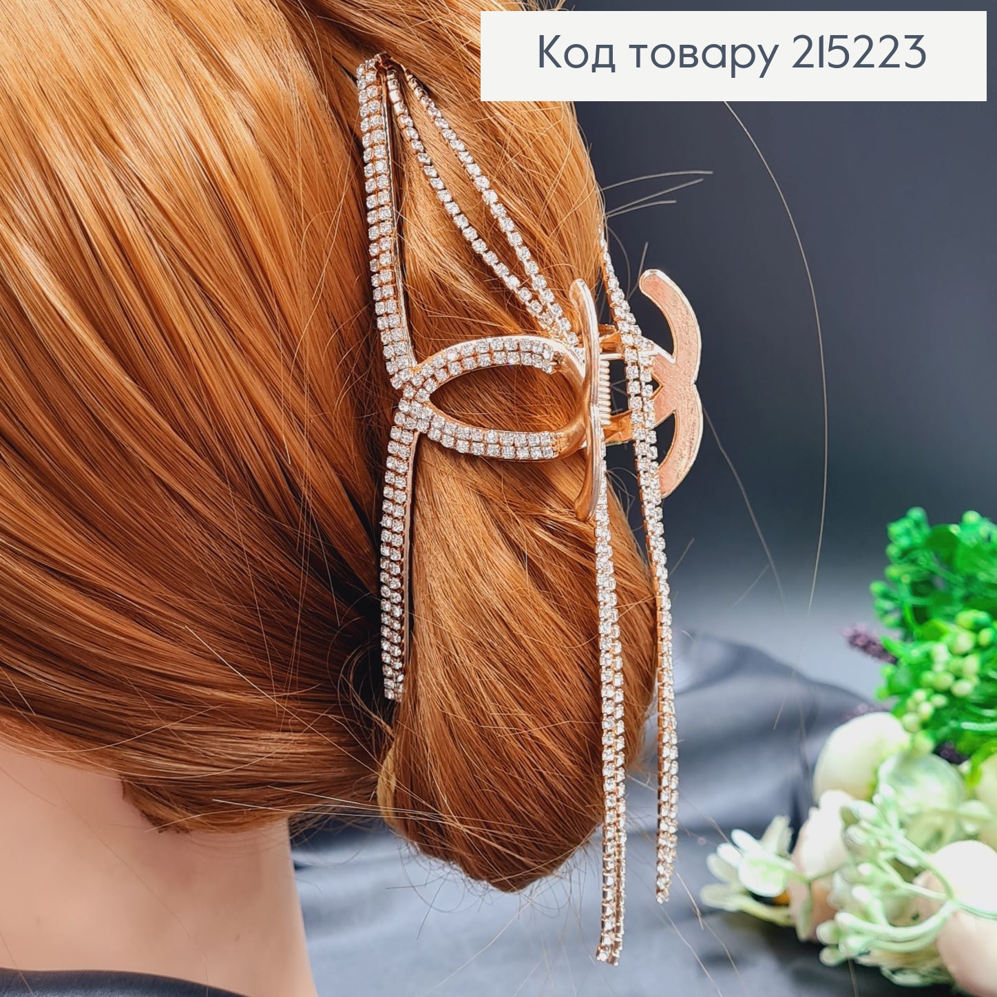 Краб металл "Петелька" украшен Блестящими камешками, 6см, Золотого цвета 215774 фото