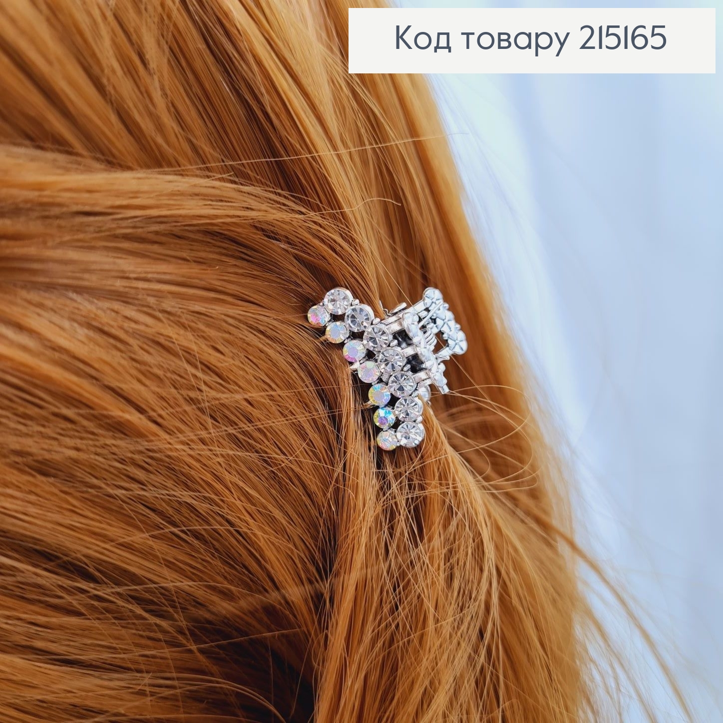 Краб металл "Петелька" украшен Блестящими камешками, 6см, Серебряного цвета 215776 фото