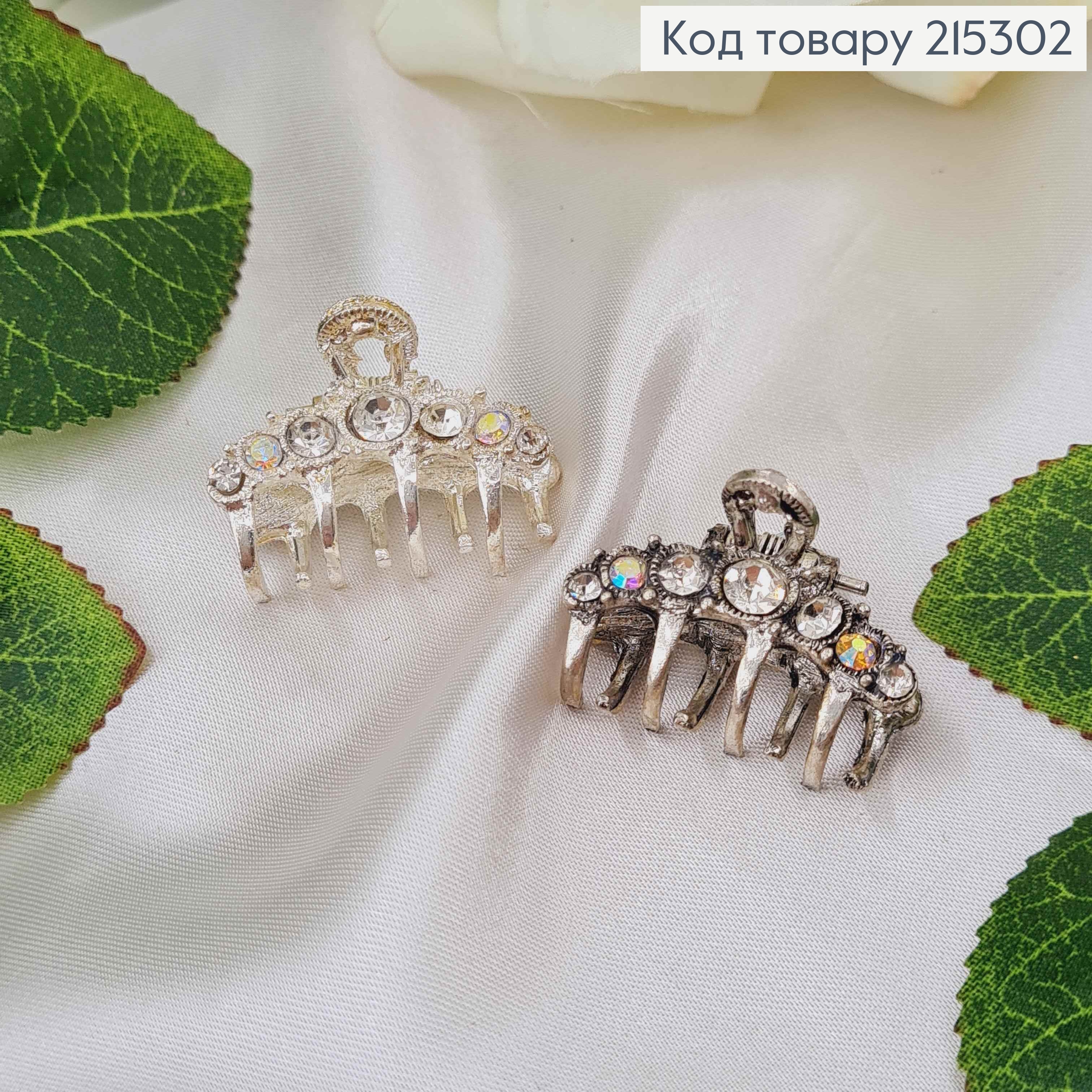 Краб металл "Петелька" украшен Блестящими камешками, 6см, Серебряного цвета 215776 фото