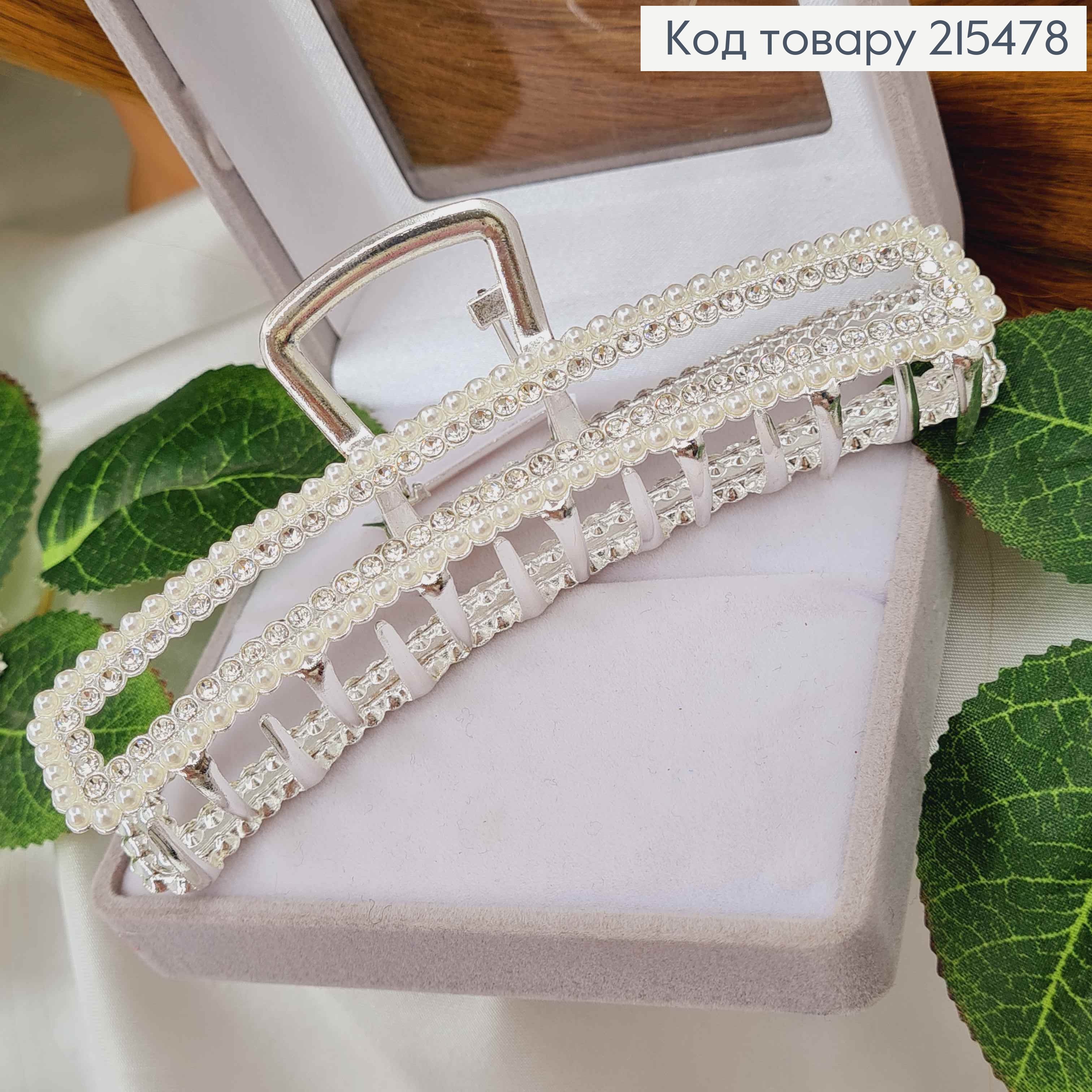 Краб металл "Петелька" украшен Блестящими камешками, 6см, Серебряного цвета 215776 фото