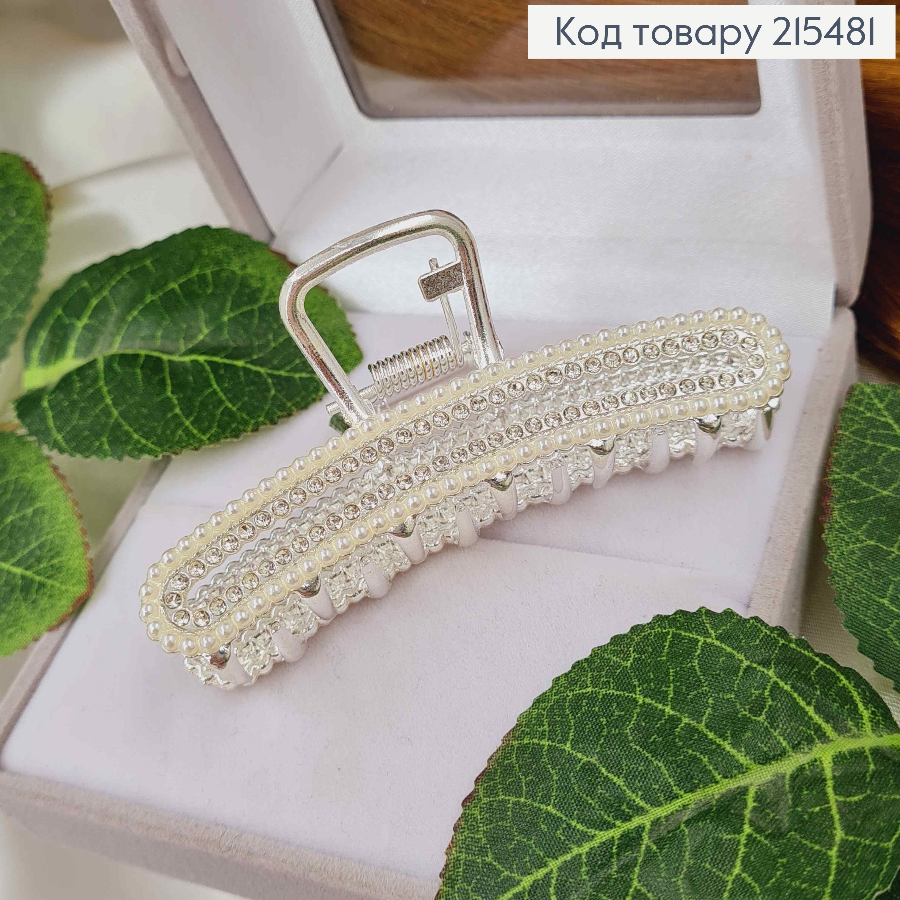 Краб металл "Петелька" украшен Блестящими камешками, 6см, Серебряного цвета 215776 фото