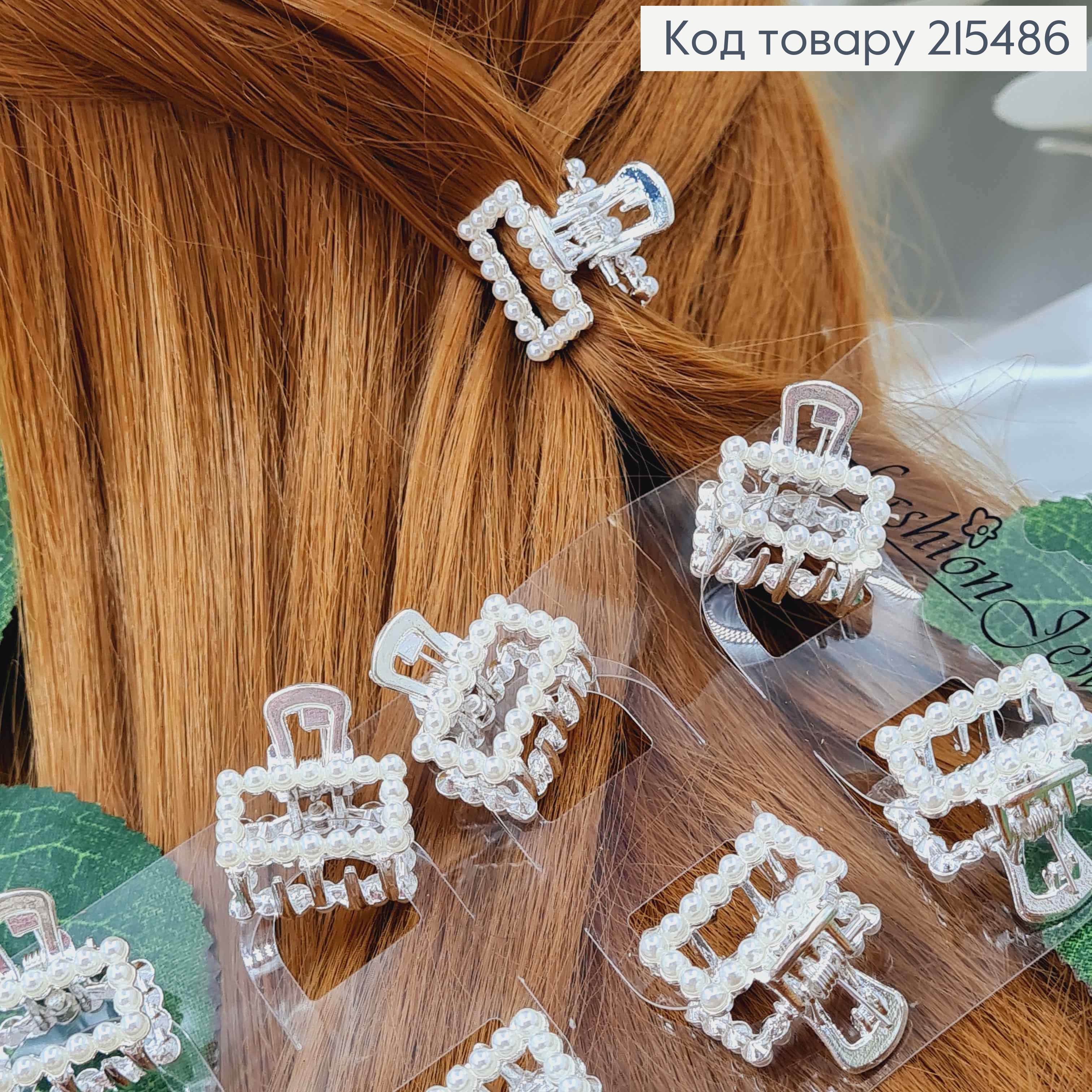 Краб металл, серебряного цвета, квадратик в жемчужинах, 2см