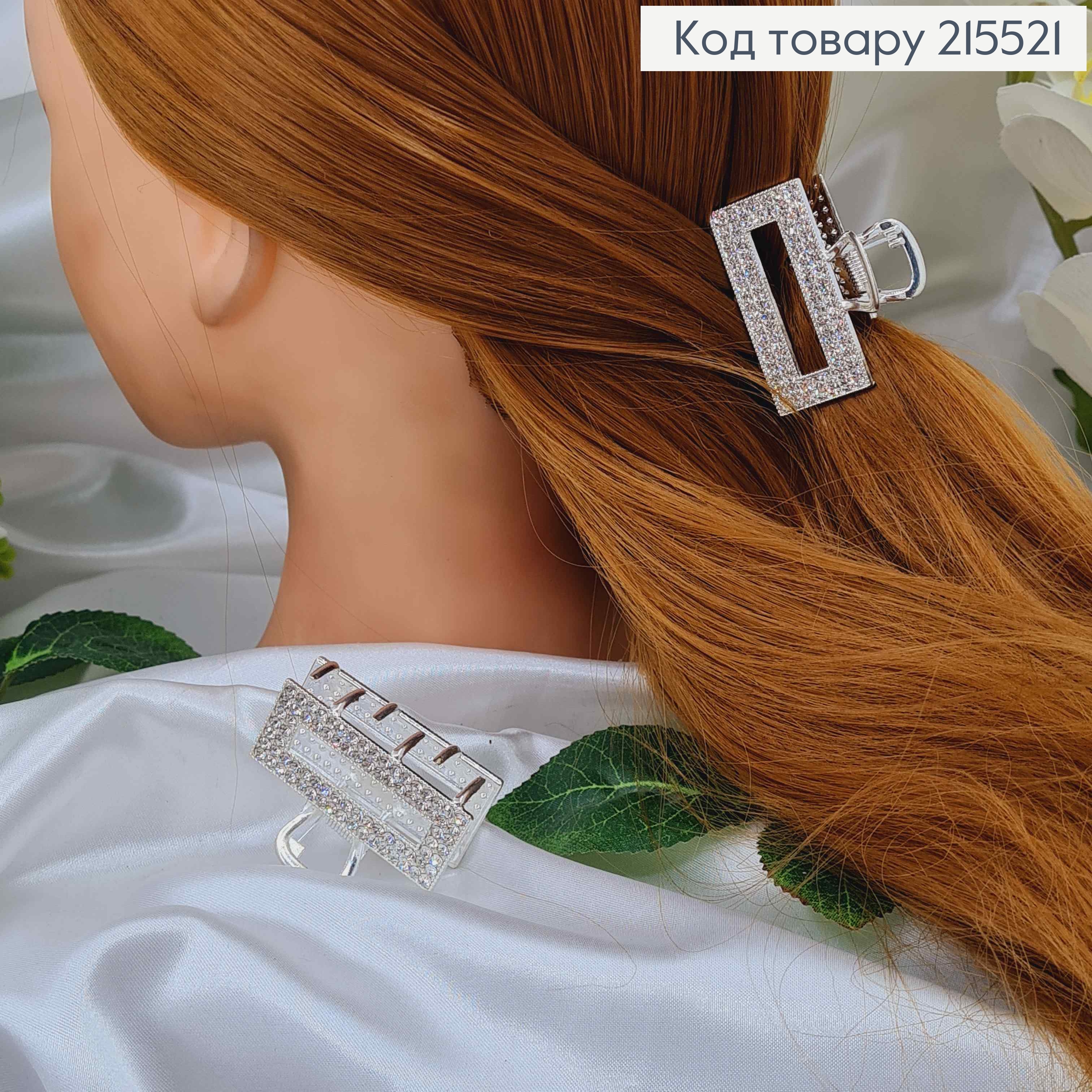Краб металл "Петелька" украшен Блестящими камешками, 6см, Серебряного цвета 215776 фото