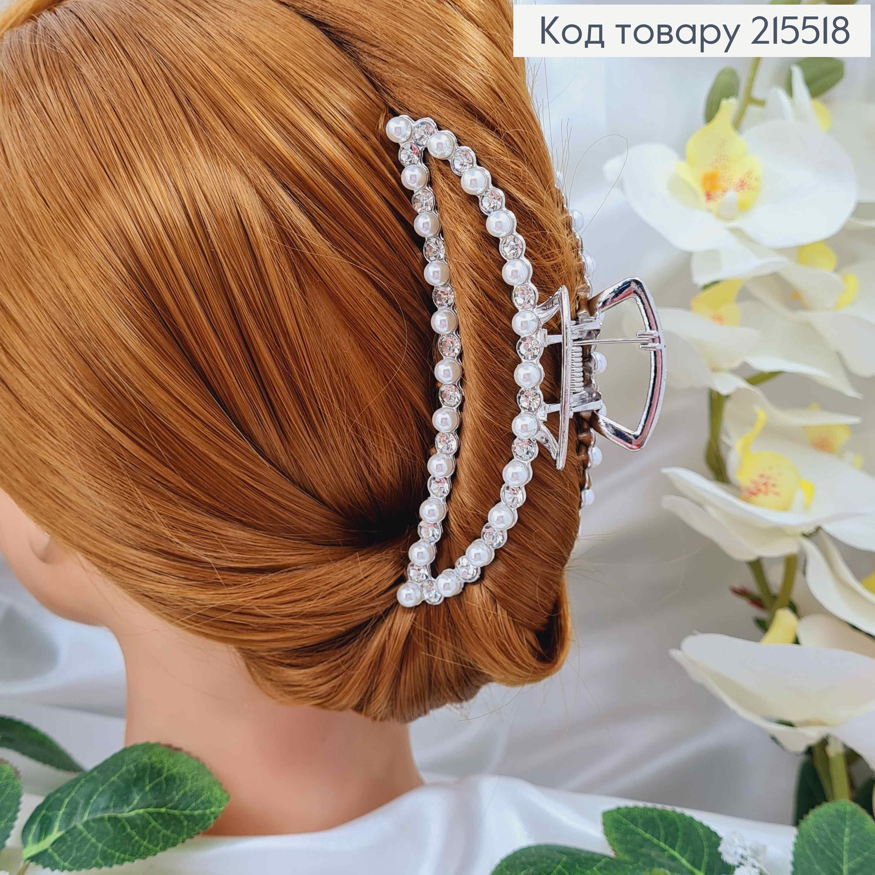 Краб металл "Петелька" украшен Блестящими камешками, 6см, Серебряного цвета 215776 фото