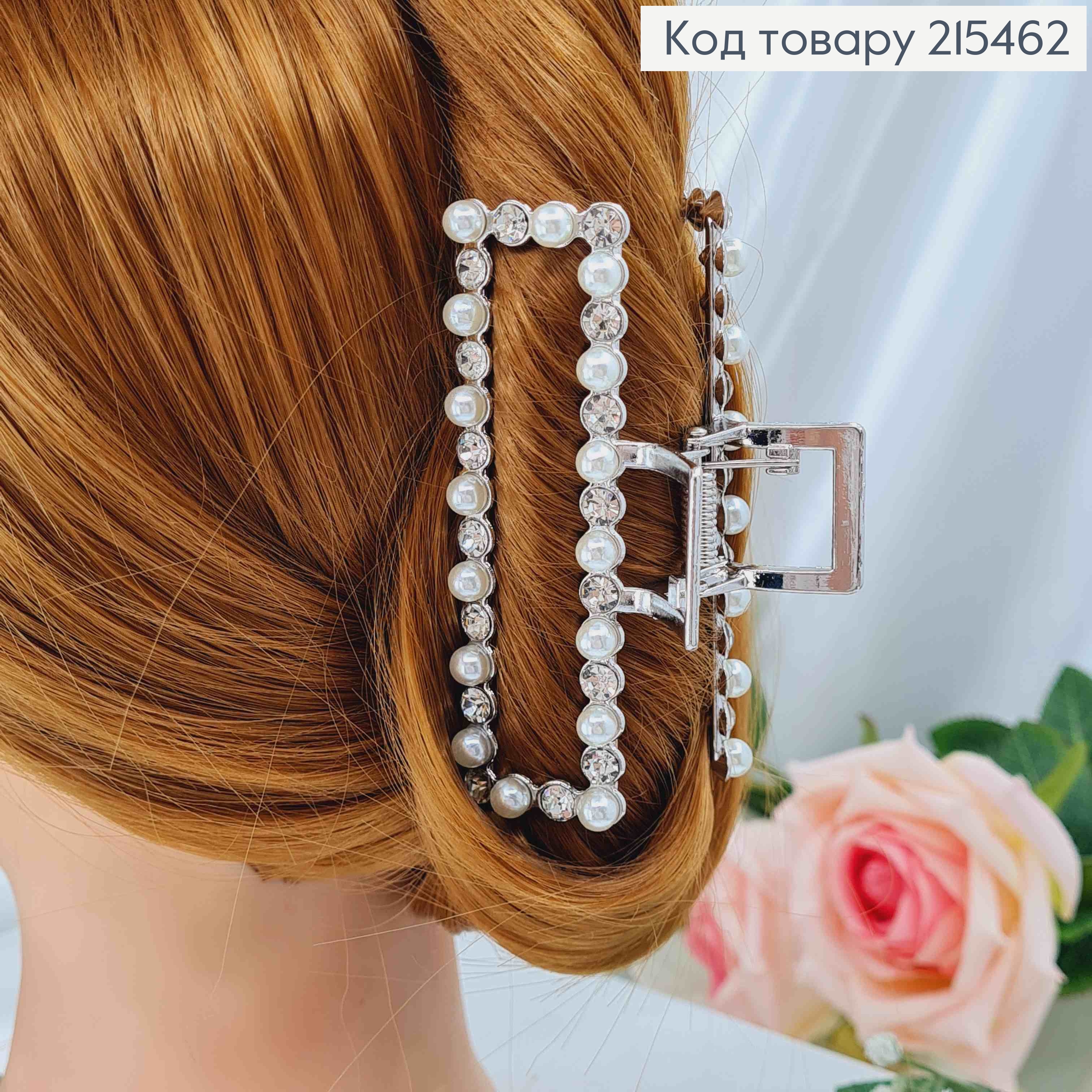 Краб металл "Петелька" украшен Блестящими камешками, 6см, Серебряного цвета 215776 фото