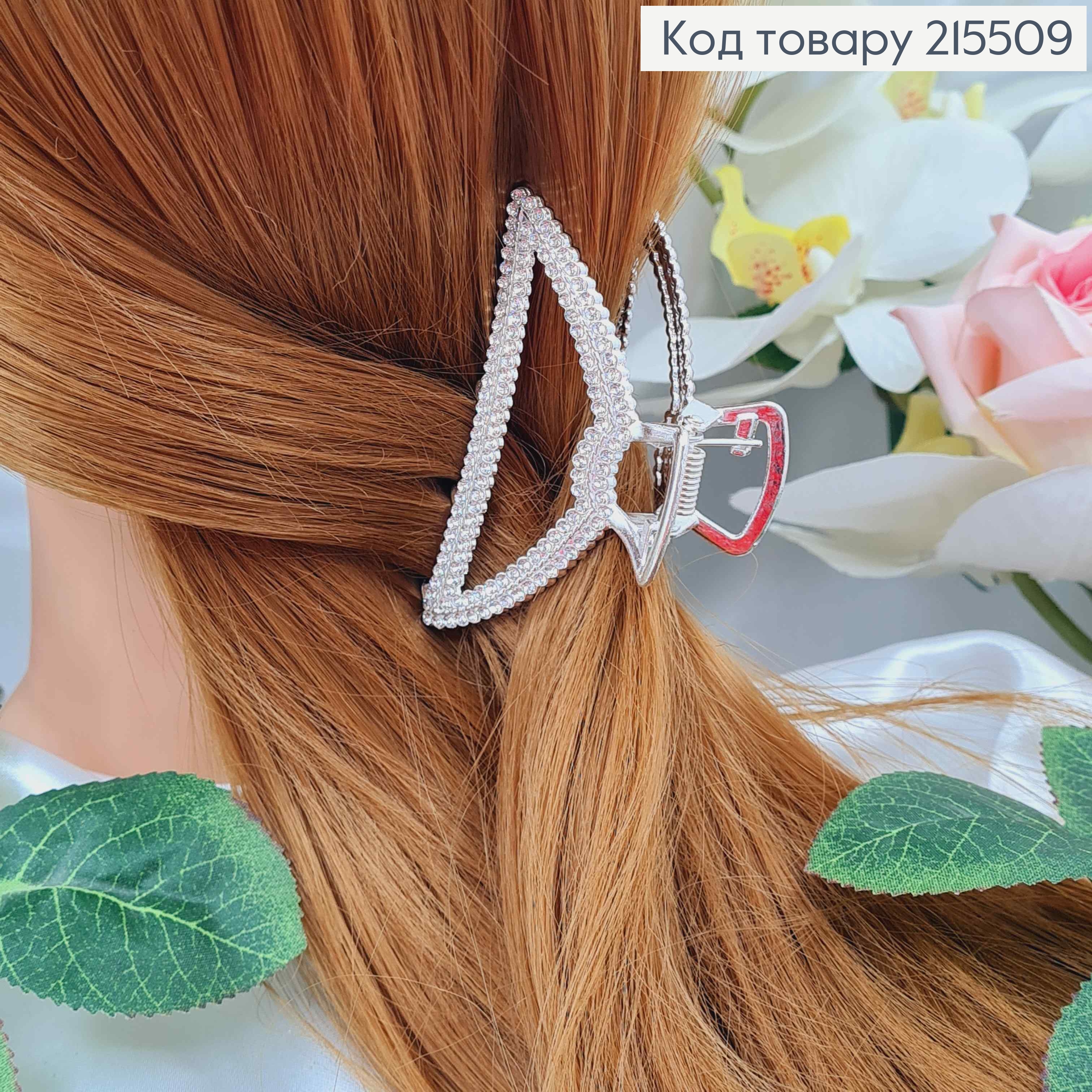 Краб металл "Петелька" украшен Блестящими камешками, 6см, Серебряного цвета 215776 фото