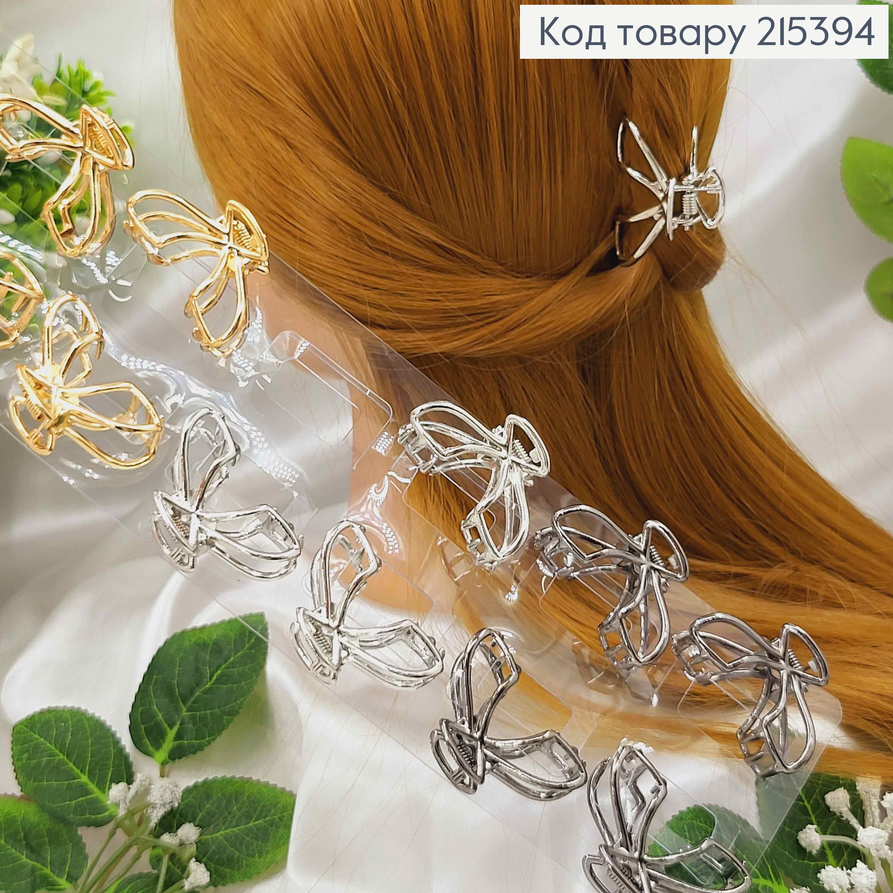 Краб металл "Ажурный Бант" украшен блестящими камешками, 6см, цвета Металик 215775 фото