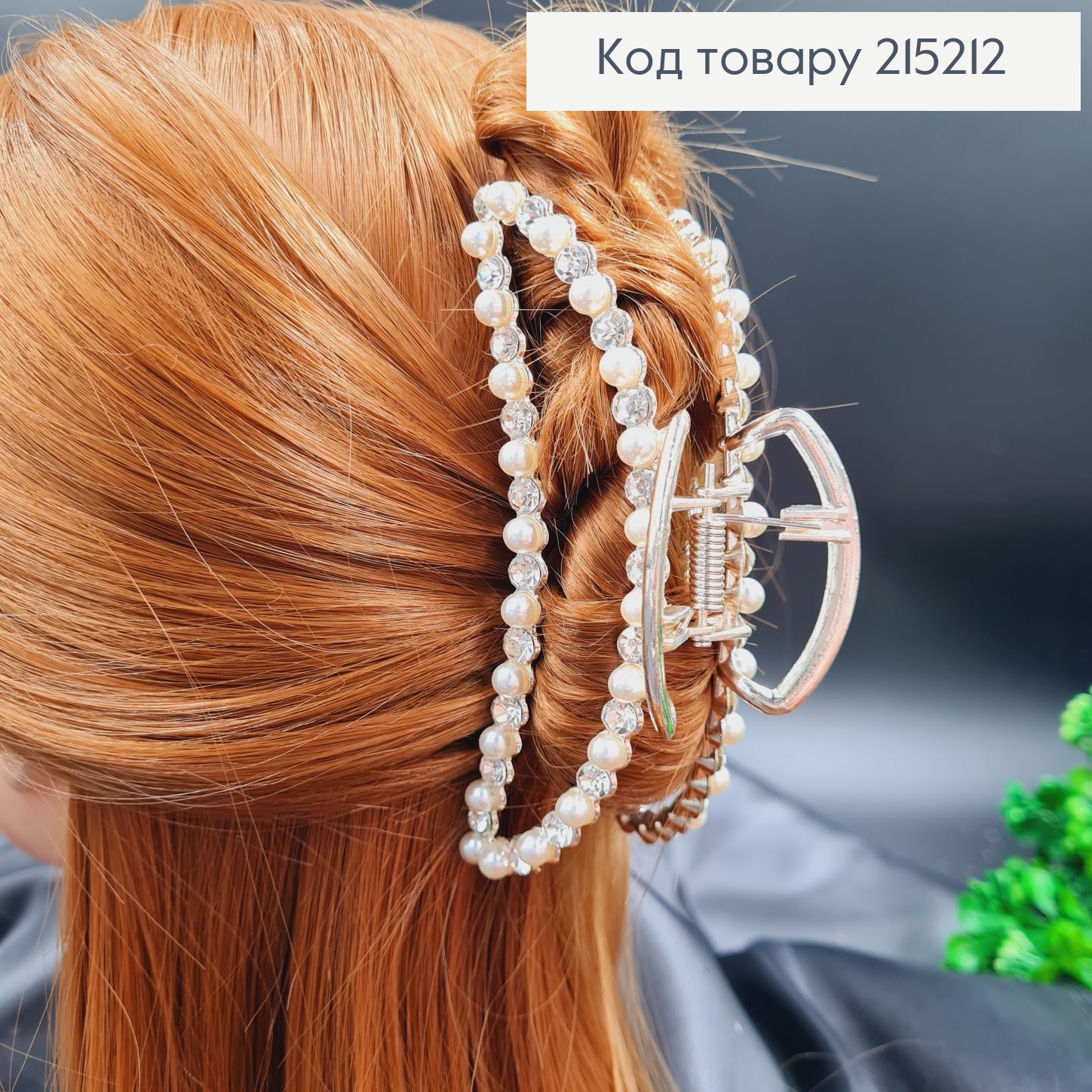 Краб металл "Петелька" украшен Блестящими камешками, 6см, Серебряного цвета 215776 фото