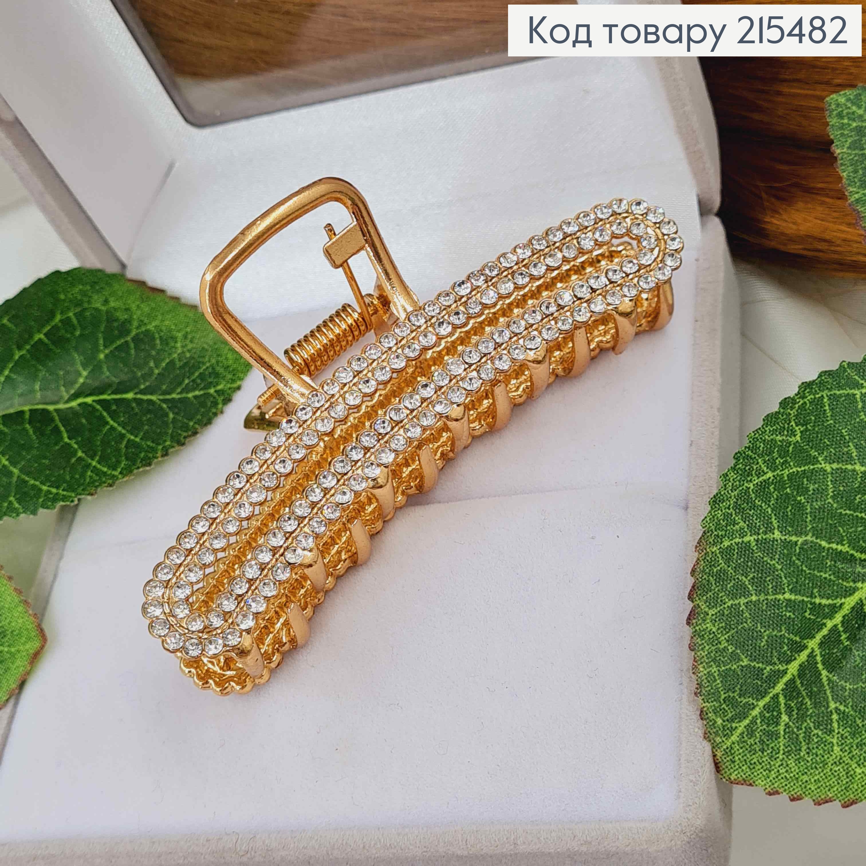 Краб металл "Петелька" украшен Блестящими камешками, 6см, Золотого цвета 215774 фото