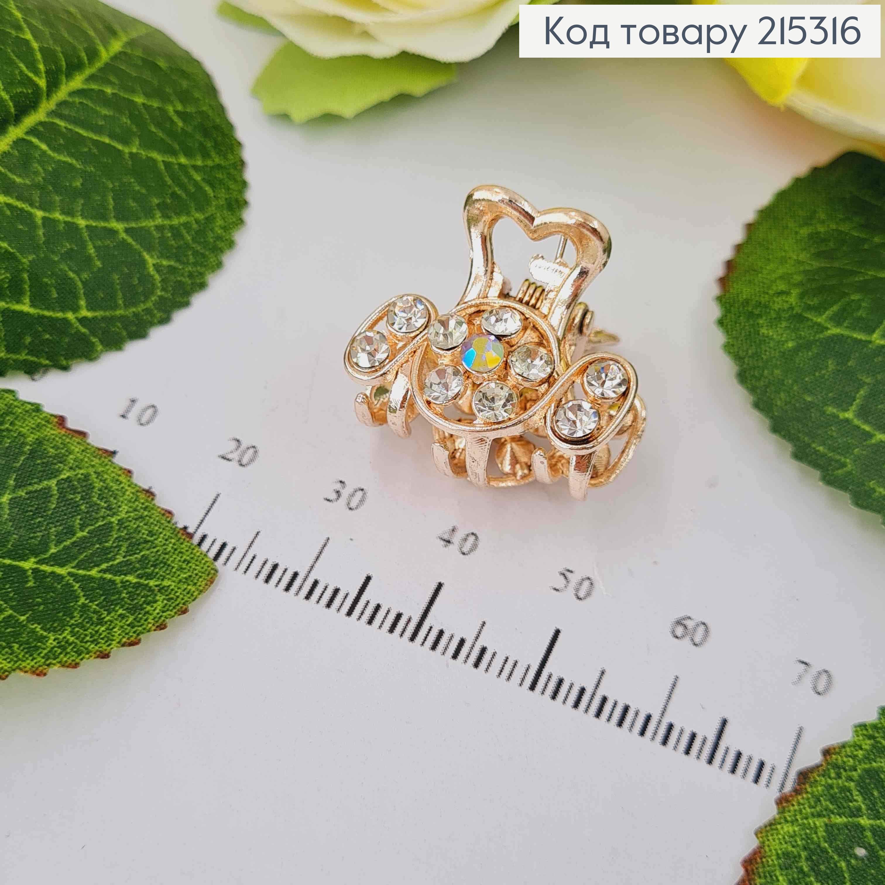 Краб металл "Петелька" украшен Блестящими камешками, 6см, Золотого цвета 215774 фото