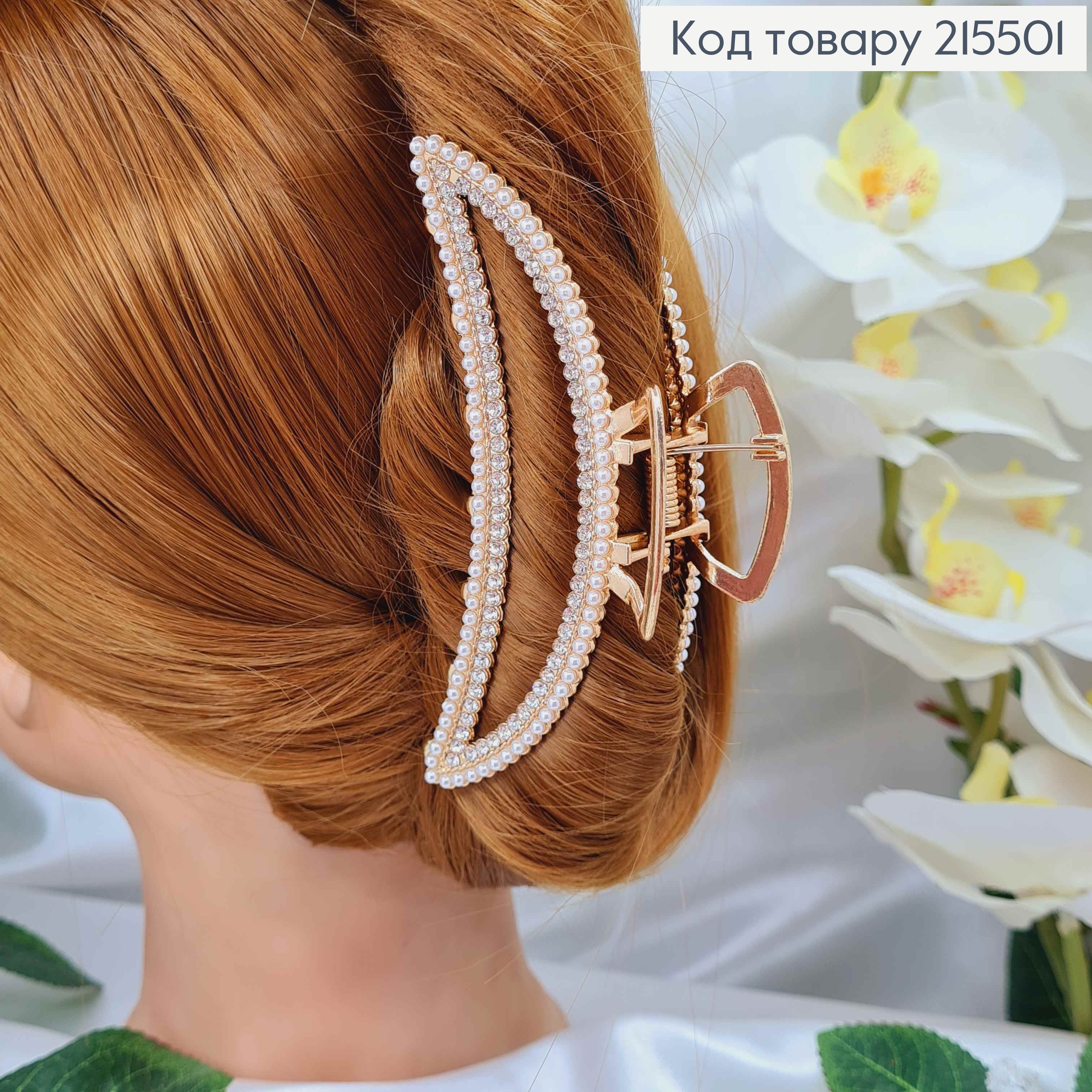 Краб металл "Петелька" украшен Блестящими камешками, 6см, Золотого цвета 215774 фото