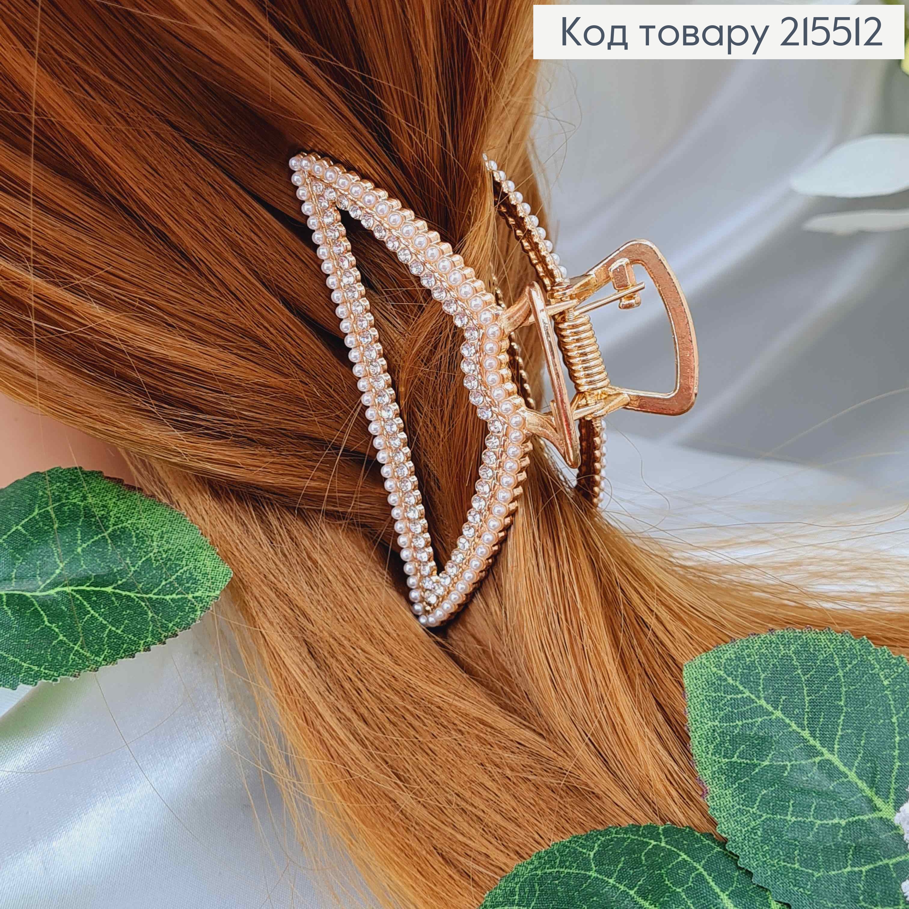 Краб металл "КОЛОСОК" с Блестящими камешками и Жемчужками, 11см, Золотого цвета 215761 фото