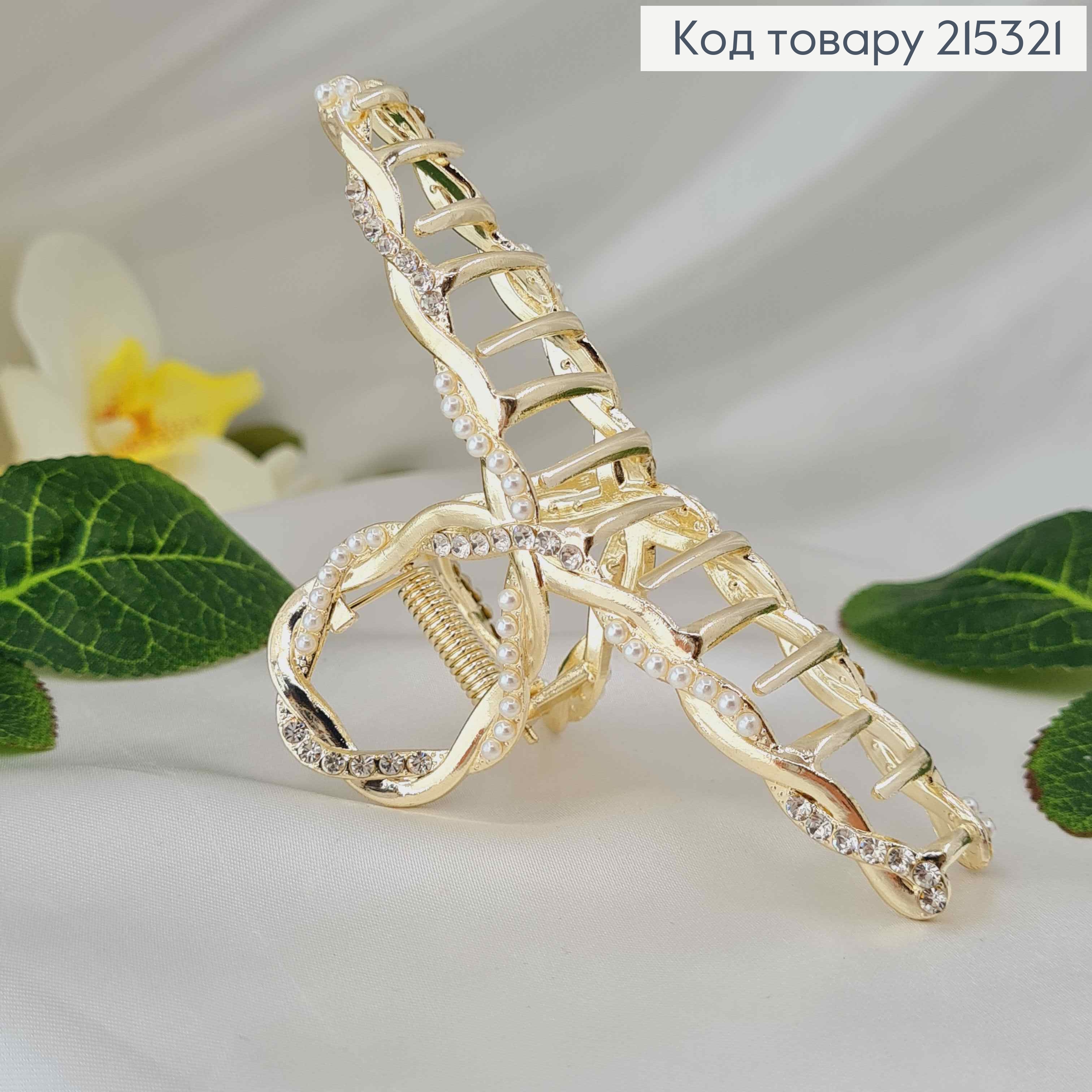 Краб металл "КОЛОСОК" с Блестящими камешками и Жемчужками, 11см, Золотого цвета 215761 фото