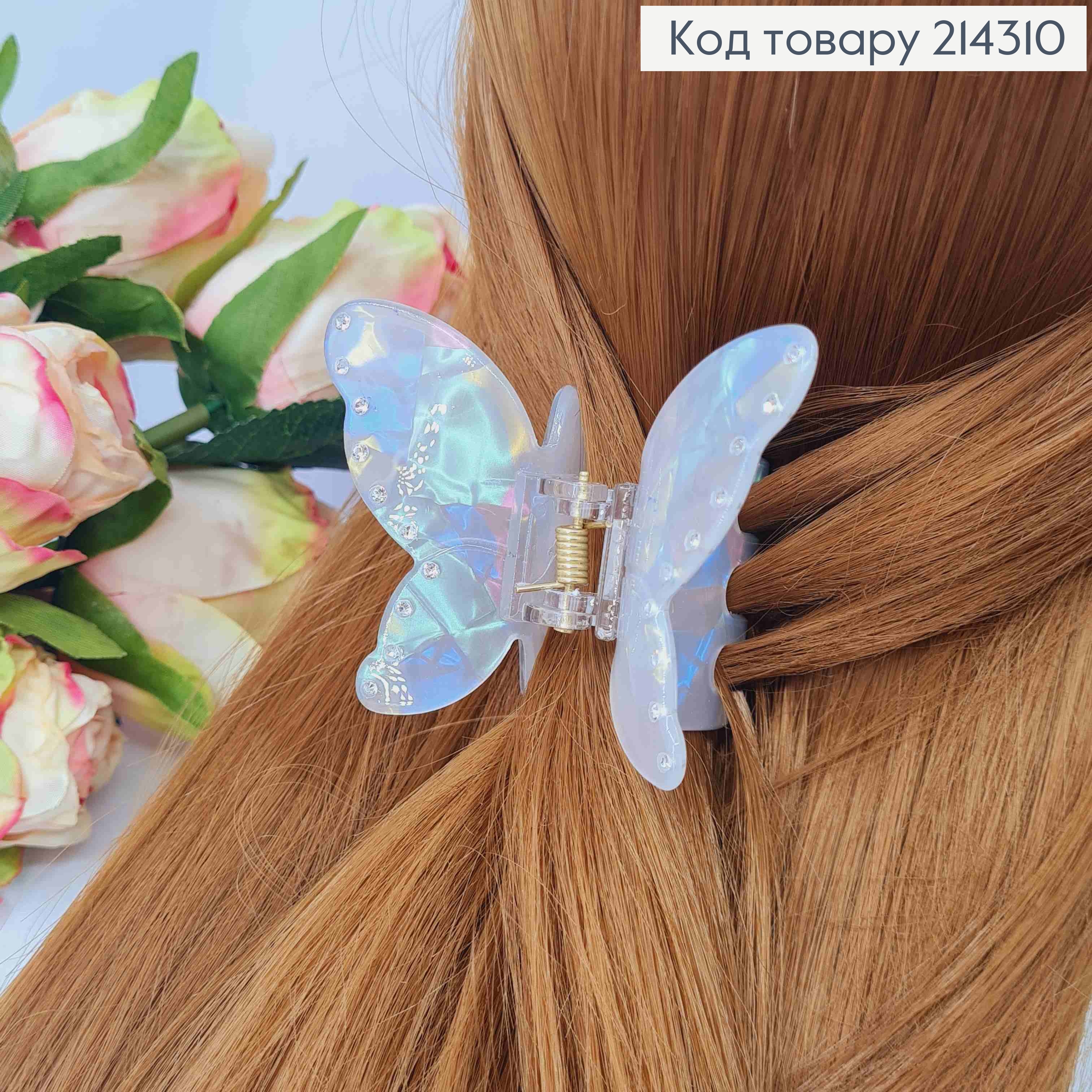 Краб пластик, Бабочка с ажурными крыльями, 7,5*8см, Перламутрово-Голубого цвета 214284 фото