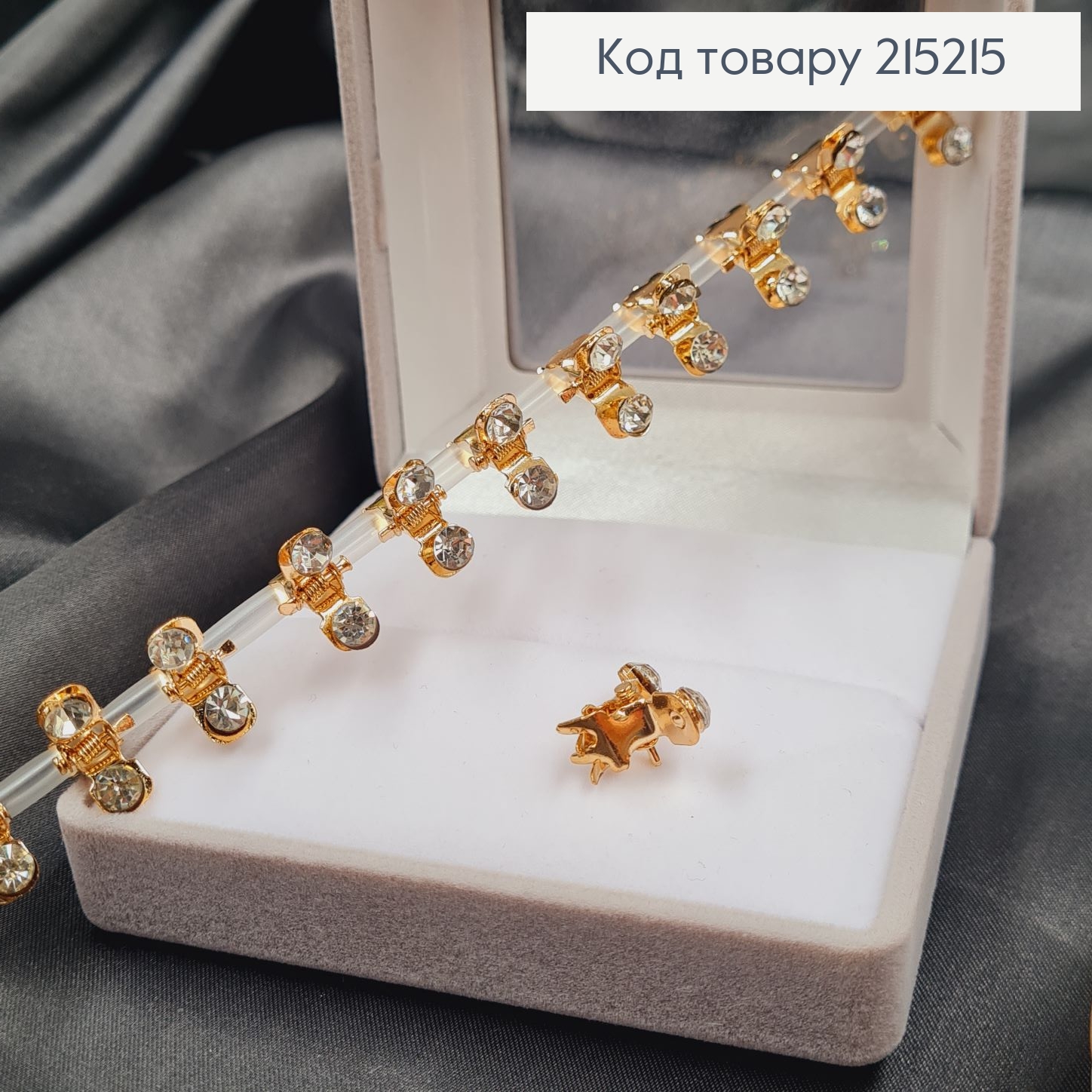 Краб металл "Петелька" украшен Блестящими камешками, 6см, Золотого цвета 215774 фото