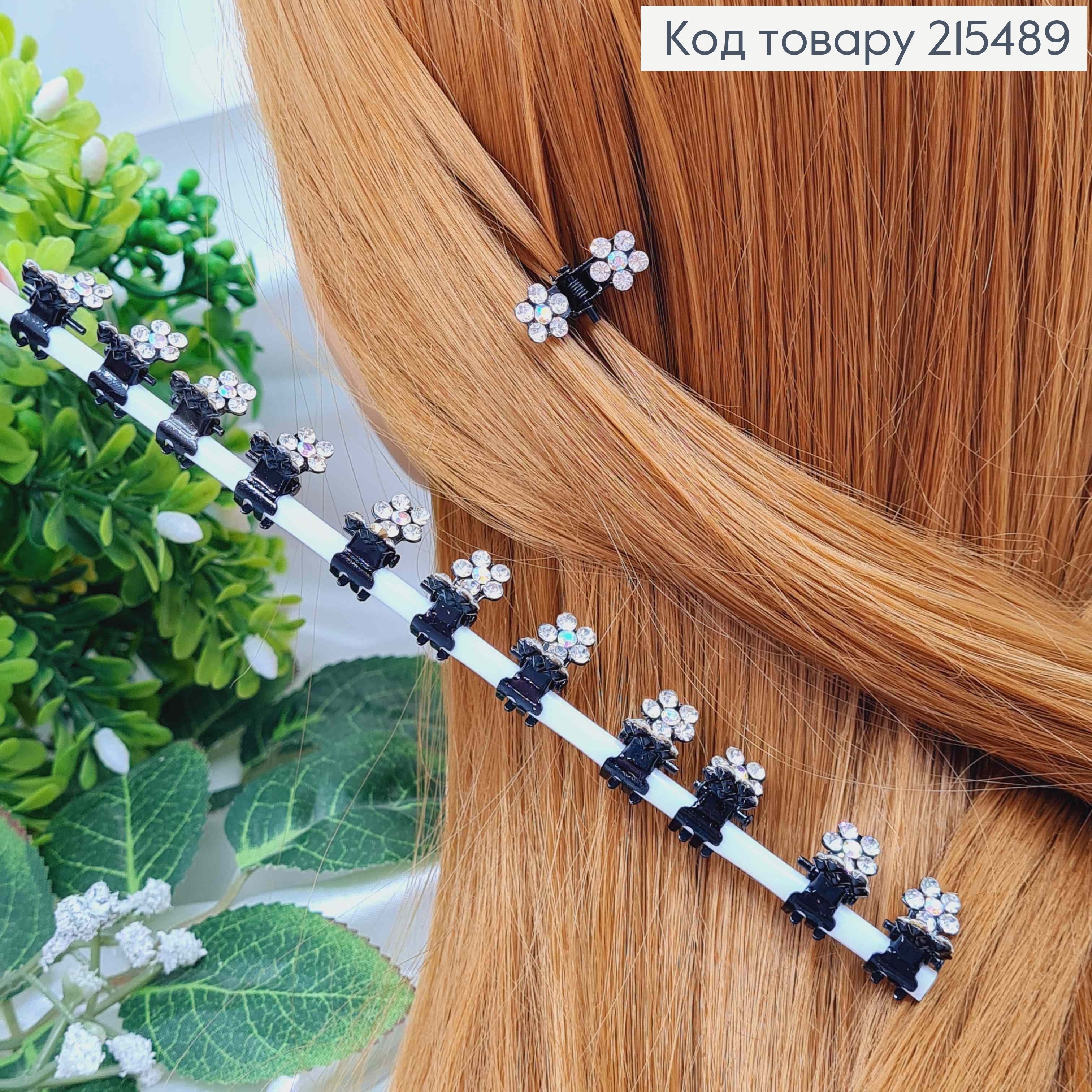 Крабик маленький, с двумя цветочками в камешках, 1.5 см, металл, черный цвет, 12 шт/уп.