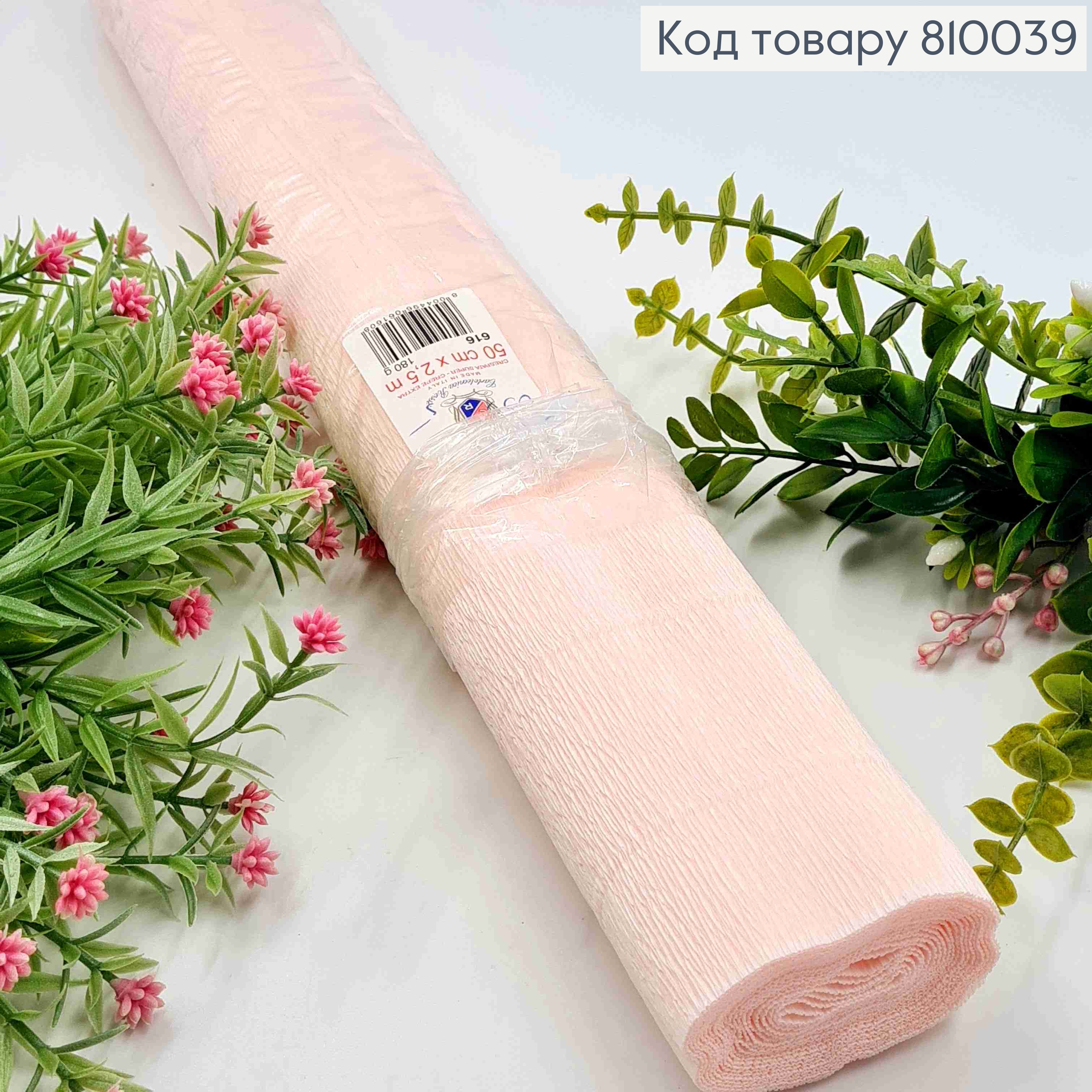 Креп-бумага гофрированная, БЛЕДНО-РОЗОВАЯ (цвет 616), ширина 50см, длина 2,5м, ITALY