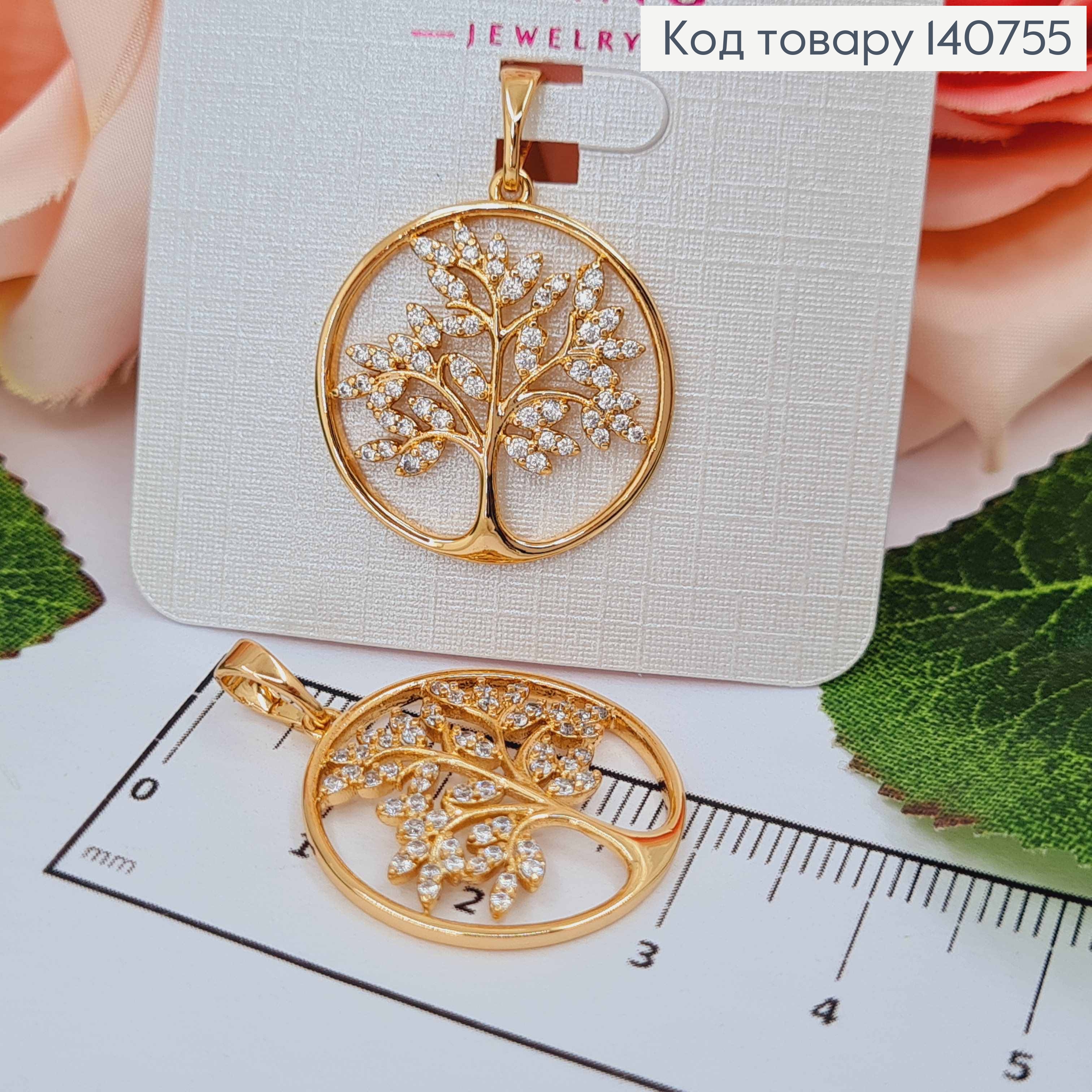 Кулон, "Дерево познания" в круглой оправе, с камешками, 2 см, Xuping 18K
